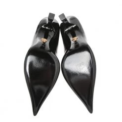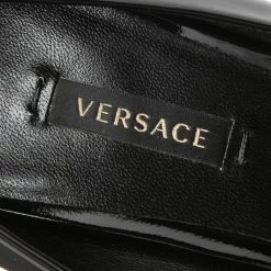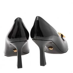 Treat your feet to the best footwear by choosing these fine pumps from Versace! The black pumps have been crafted in Italy using patent leather. They are designed with the Medusa motif on the pointed toes and lifted on 8.5 cm heels.