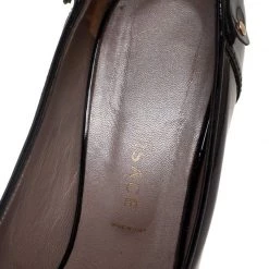 This Versace pump brings a design that will remain stylish through any season or trend. It has a timeless appeal. Made in Italy, this pair is constructed using patent leather and designed with pointed toes and 14.5 cm heels.