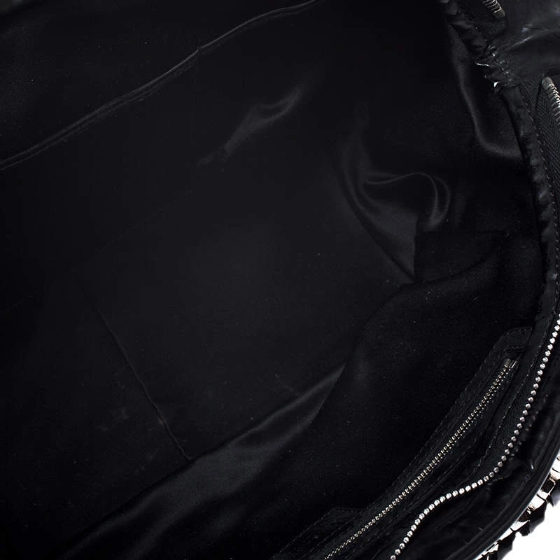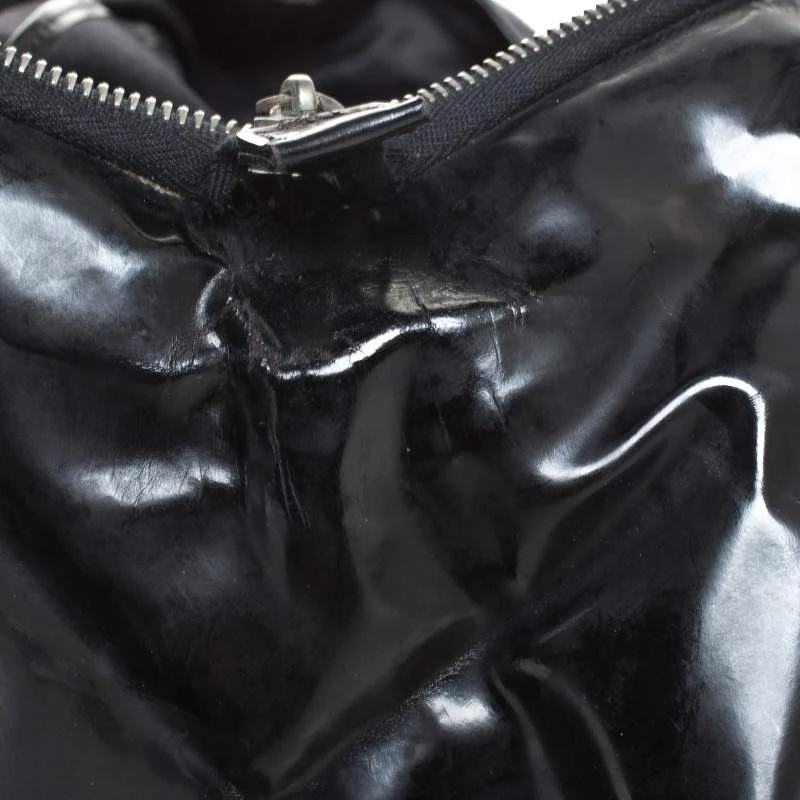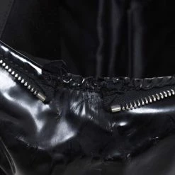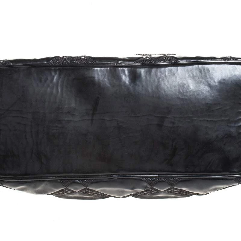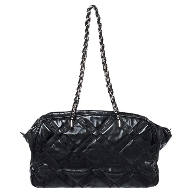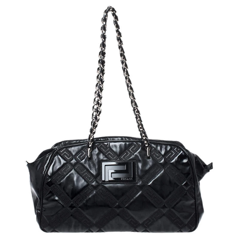 This handbag from Versace lends a signature touch to your dress and elevates its trend quotient. This opulent and multipurpose patent leather handbag would go perfectly for any of your occasions. With an expertly lined satin, this bag can accommodate all your essentials. Accentuate your style by carrying this black bag that looks visually aesthetic.