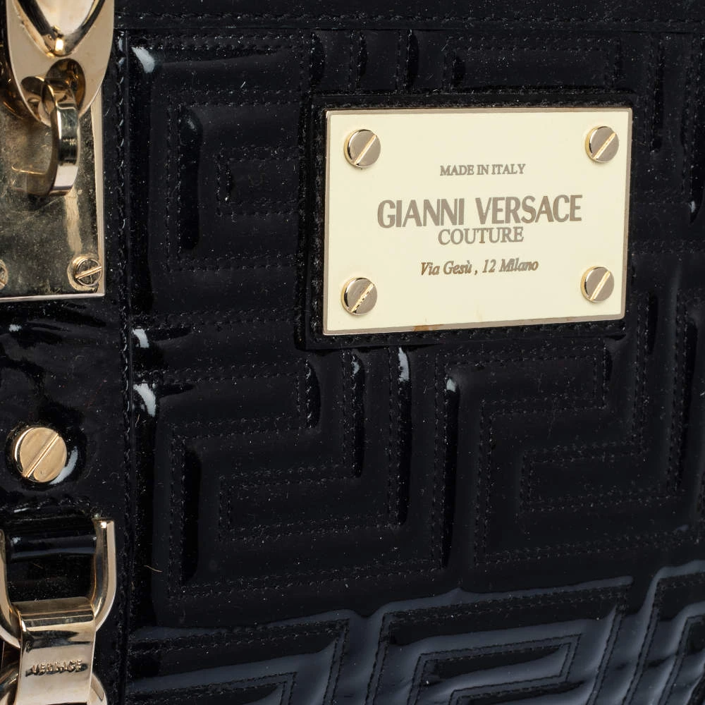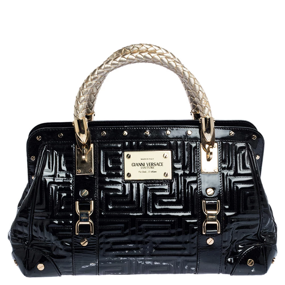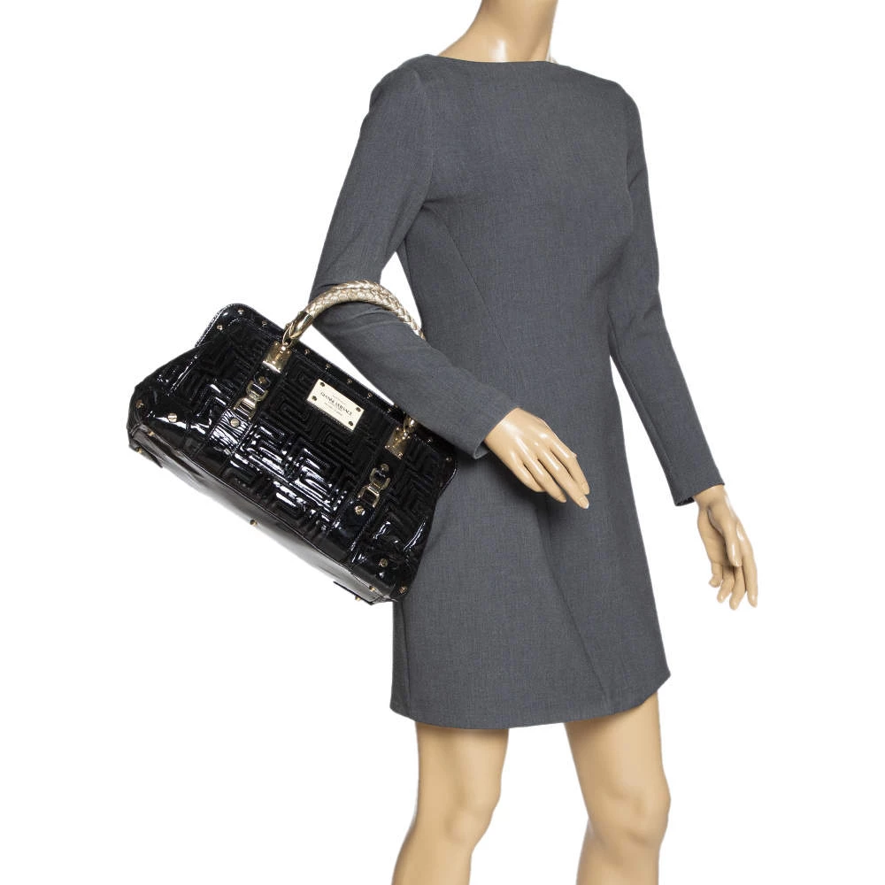 How gorgeous is this satchel from Versace! It carries an outstanding design and a fabulous interplay of patent leather and gold-tone hardware. It has a top leading to a satin interior while being held by two top handles. The shape and the brand logo on the front just uplift its beauty and makes it a buy you will not regret.