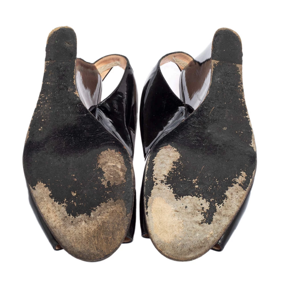 Wear these stylish sandals from the house of Versace and channel your inner fashionista. These beautiful patent leather sandals are enhanced with the signature Medusa logo. This pair is complete with wedge heels and comfortable soles.