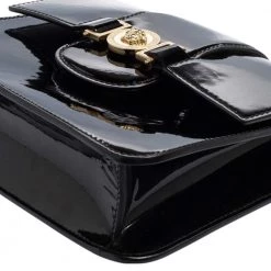 This bag from Versace definitely needs to be on your wishlist. The bag is crafted from patent leather in a lovely black shade. It flaunts a long shoulder strap and the famous Medusa logo at the front. The leather interior houses a zip pocket.