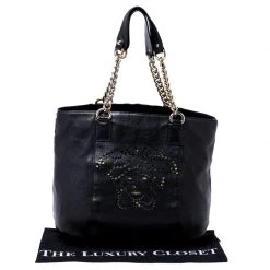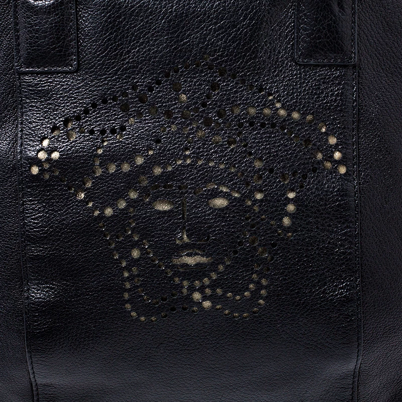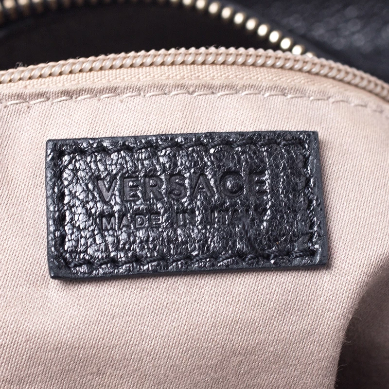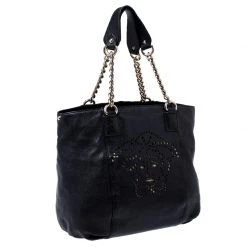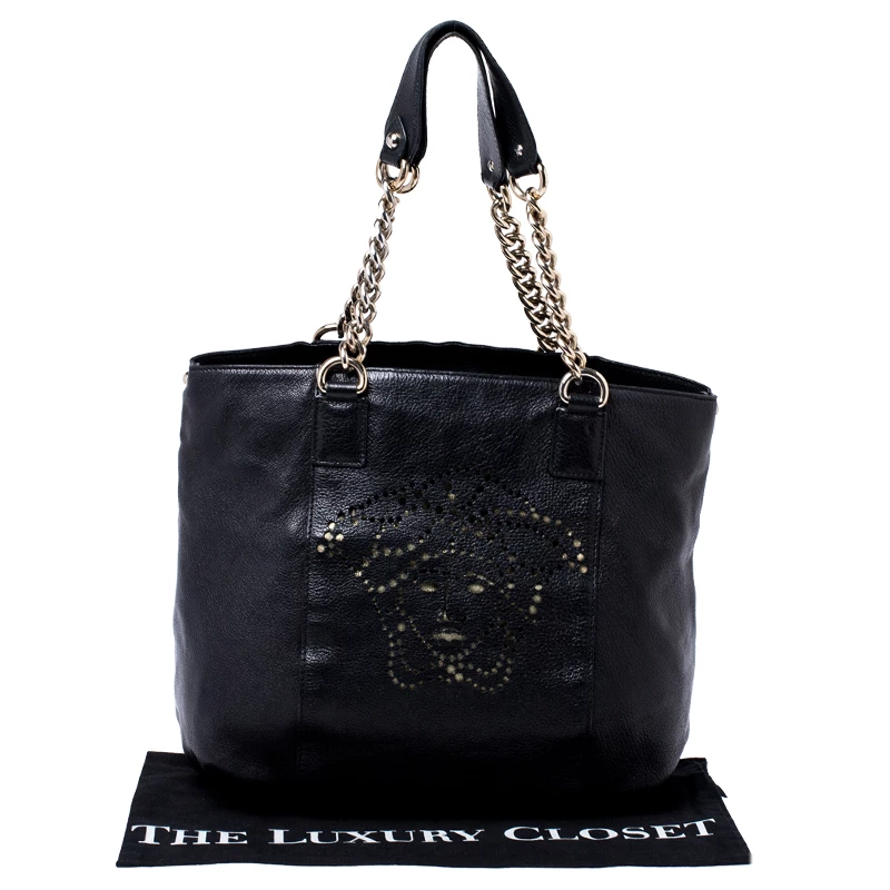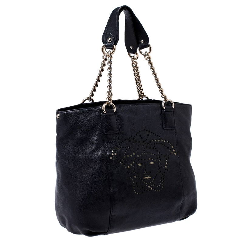 This classic piece by Versace is designed with the signature Medusa logo adorned at the front in a perforated pattern and two top handles. Flaunt an incredible style with this remarkable leather bag that is lined with the finest fabric on the inside and keeps all your essentials intact. A superb complement to your outfit will be this gorgeous bag in the shade of black.