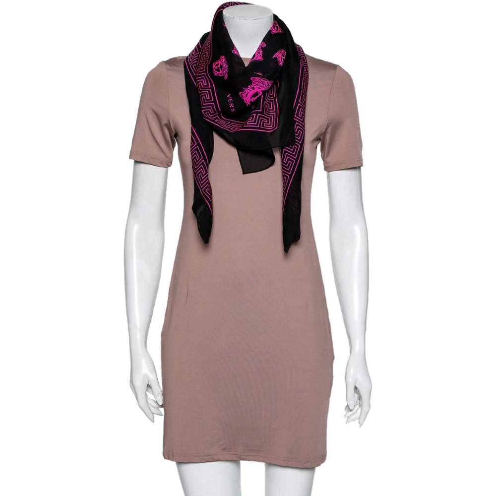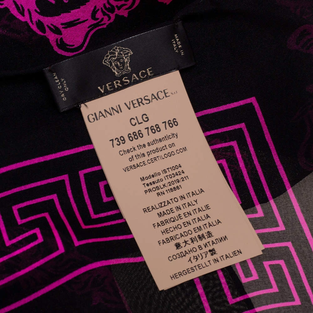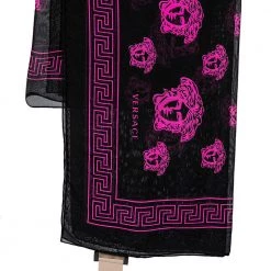 Beautifully made from silk, this Versace scarf in black and pink features Medusa prints all over. It has a nice length and is neatly finished with hemmed edges. Make this gorgeous creation yours today, and flaunt it like a fashionista!