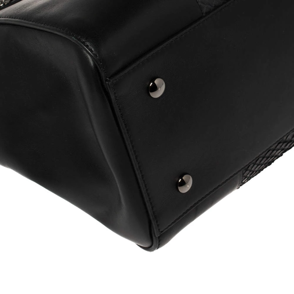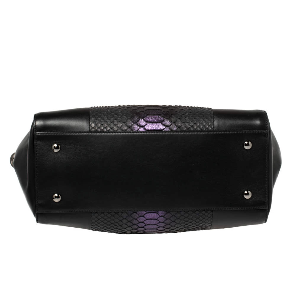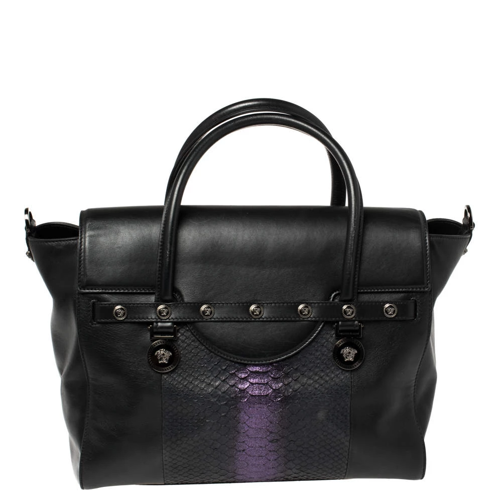 Sophisticated and luxe, this bag from Versace definitely needs to be on your wishlist. The bag is crafted from leather and exotic python skin and it features a structured silhouette. It flaunts dual handles, a removable shoulder strap, and the famous Medusa logo on the front. The spacious satin interior houses pockets. (NOTE: FOR UAE CUSTOMERS ONLY)