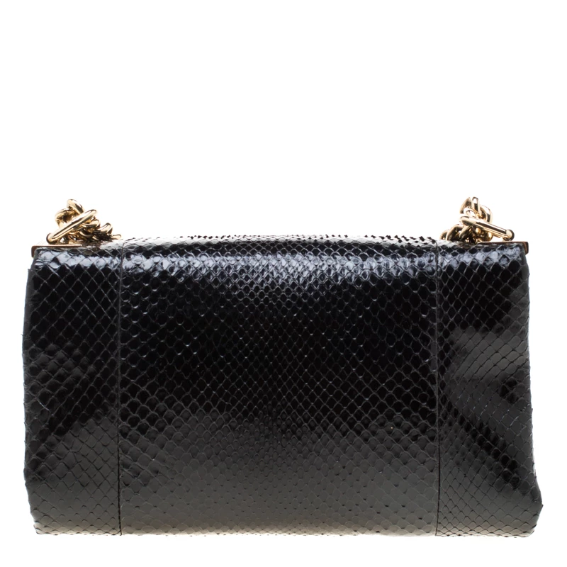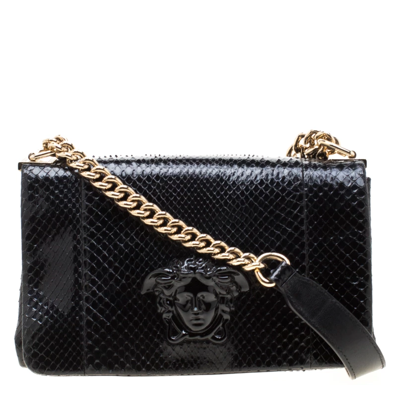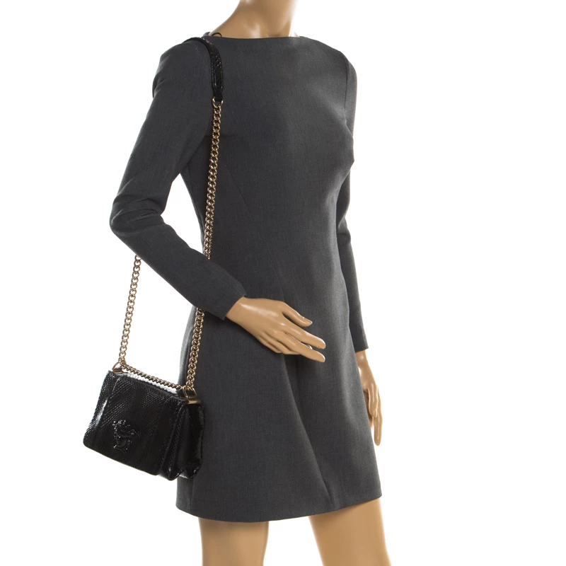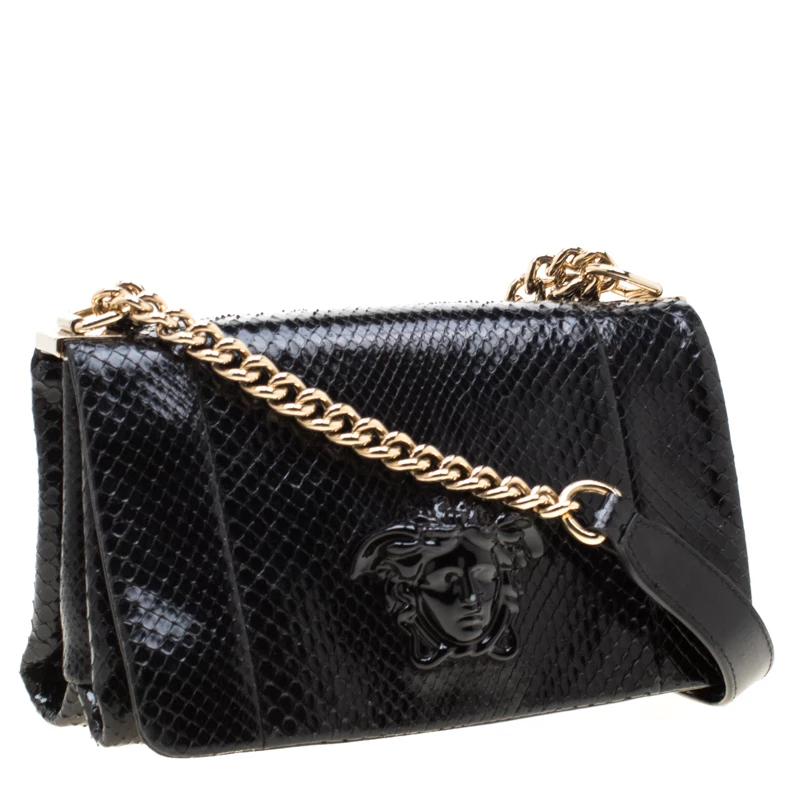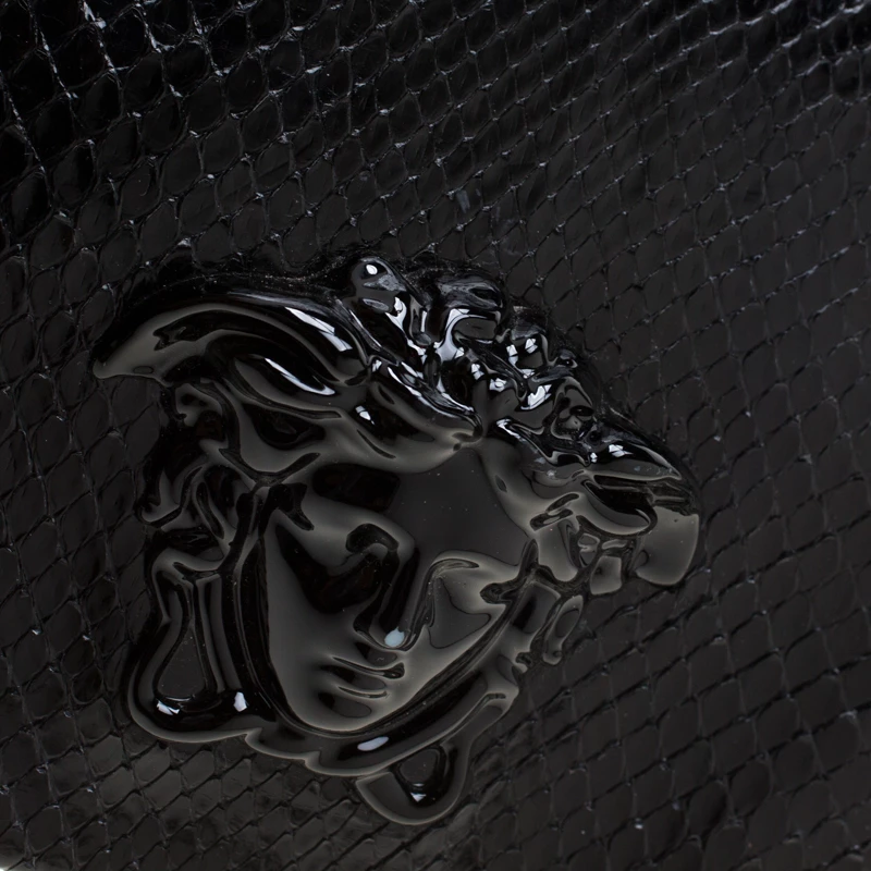 Designed to last, this beautiful bag from Versace is a prized buy. Comfortable and easy to carry, this snakeskin creation comes in black with the Medusa emblem on the flap. It has a shoulder chain and an interior lined with nylon to keep your essentials organized and safe.