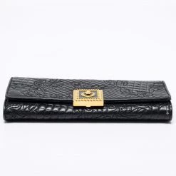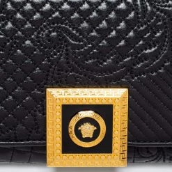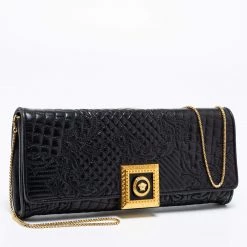 The powerful and unique creations of Versace are admired by the fashion elite of the world for their timeless essence. Created from quilted leather with innovative patterns. it gets a luxe update with a striking Medussa motif on the front and can be carried around with a chain link. The satin-lined interior of the clutch will keep your party essentials in a stylish way.