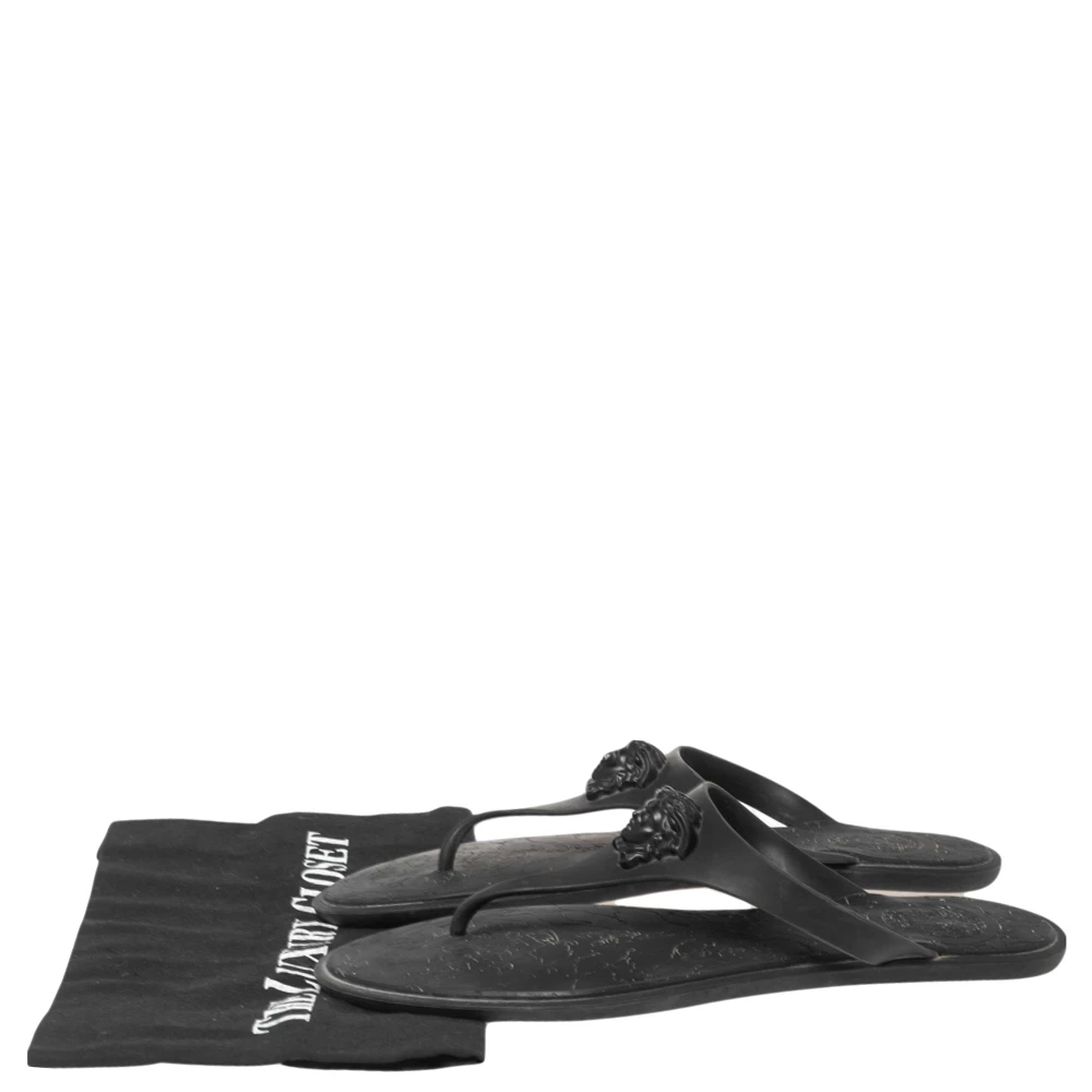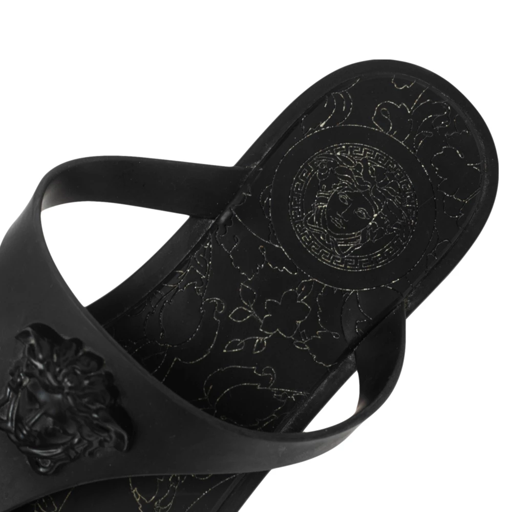 These Versace thong flats are made from rubber just so you can wear them at pools, beaches, or lounge around in them. They come in a black shade and feature the label’s Medusa logo on the vamps for a signature finish.