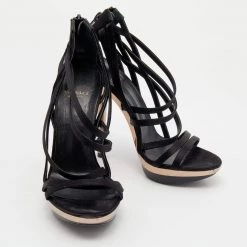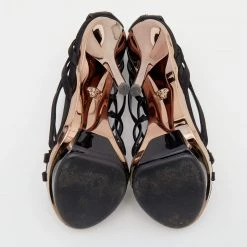 One of the most celebrated fashion House, this label is known for its brilliant craftsmanship in shoemaking. Crafted from satin in a black shade, the strappy style will adorn your feet in the most beautiful way. Style these Versace platform sandals with evening gowns for a stylish look.
