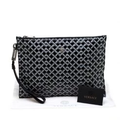 Made from black signature embossed patent leather, this pouch from Versace is a creation worthy of being yours. It has a simple structure with a top zipper that leads to a nylon interior for your little essentials. The pouch is well-made and handy.
