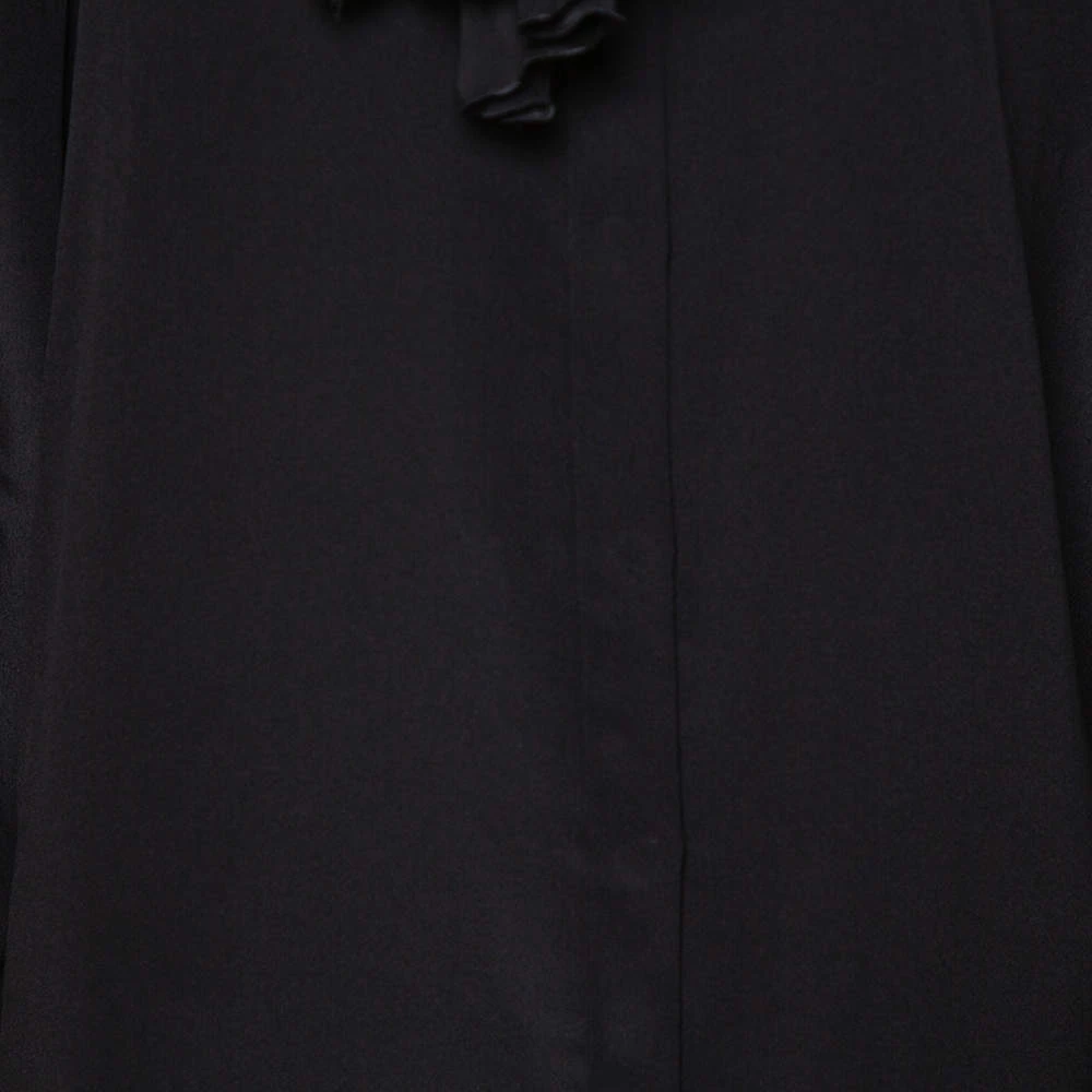 Include this stylish blouse from Versace in your closet to introduce a chic piece into your formal ensemble. Tailored in silk, this lovely black blouse carries tie detail at the neck, a buttoned front and long sleeves. This one will look great when paired with statement pants and high heels.