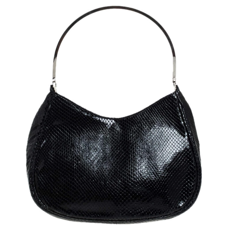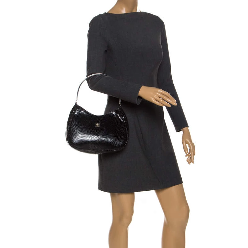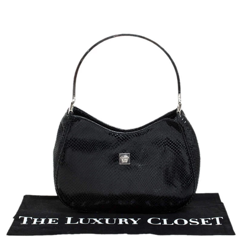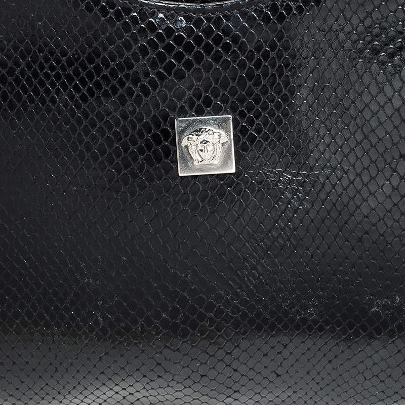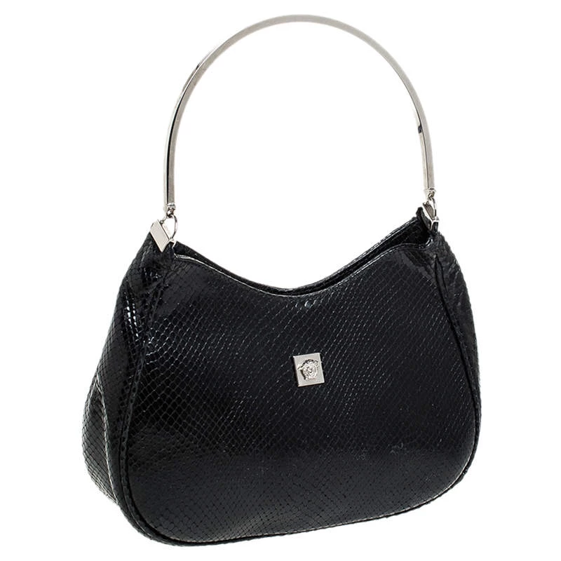 Handbags as lovely as this one are hard to come by. So, own this gorgeous Versace bag today and light up your closet! Crafted from snakeskin-embossed leather, this stunning number has a spacious interior and is wonderfully held by a silver-tone metal handle which makes the piece all the more worthy of being in your closet.