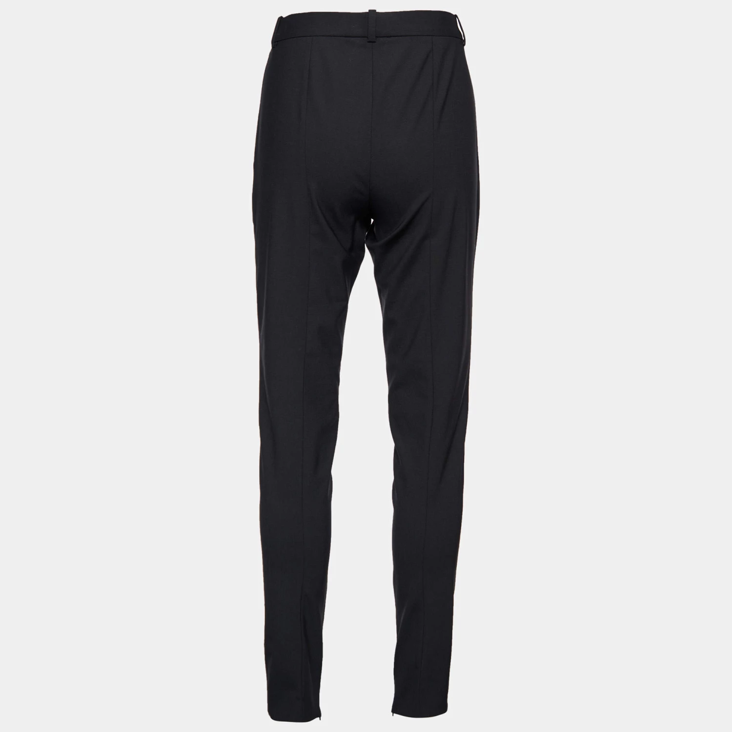 Classy, comfortable, and sartorially smart, these trousers from the House of Versace are definitely closet-essential. Featuring a tailored fit, they are stitched using black stretch wool fabric and are equipped with a zip-type closure and two functional pockets. Flaunt a stylish formal look by wearing these Versace trousers.