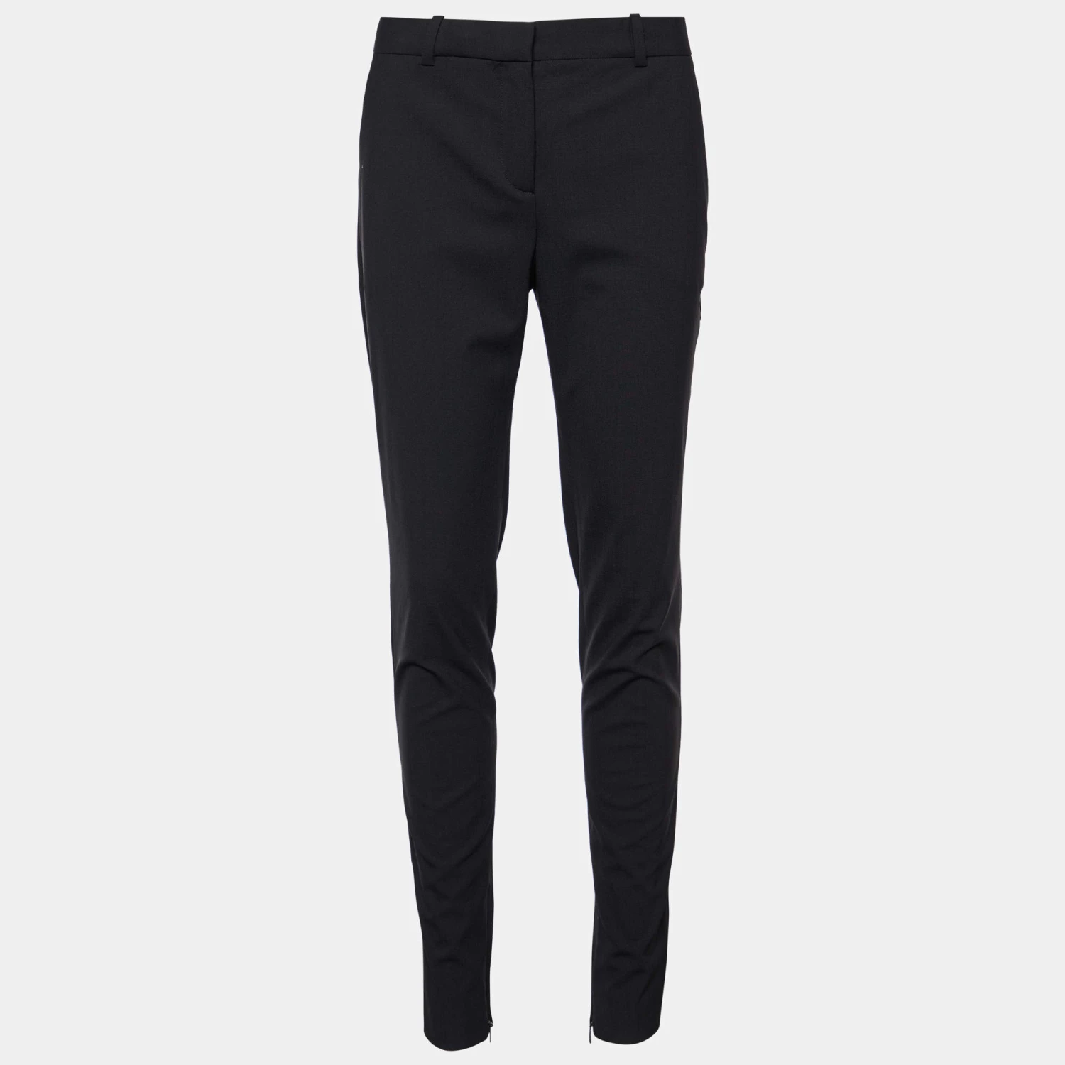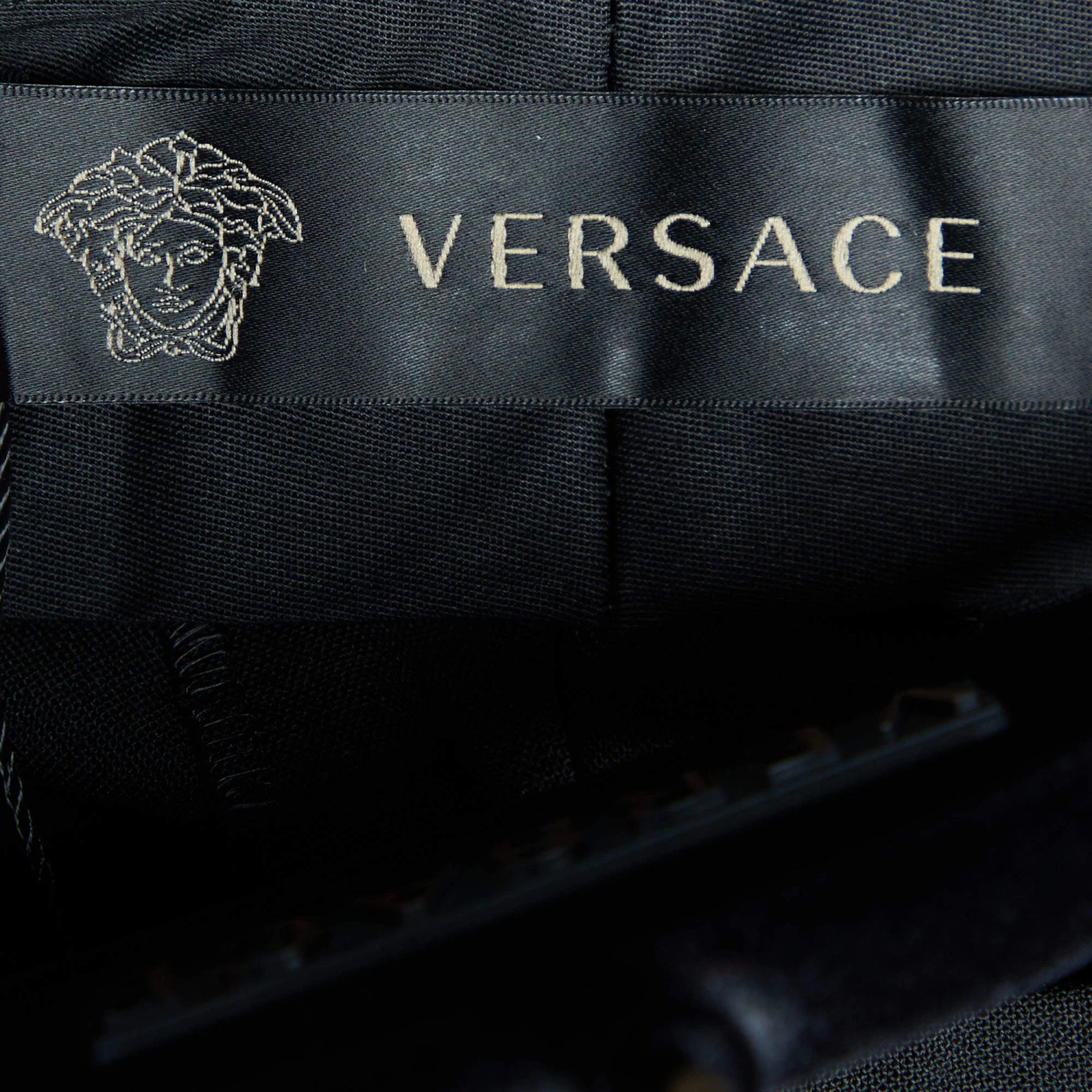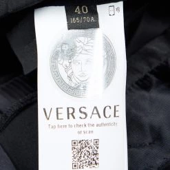 Classy, comfortable, and sartorially smart, these trousers from the House of Versace are definitely closet-essential. Featuring a tailored fit, they are stitched using black stretch wool fabric and are equipped with a zip-type closure and two functional pockets. Flaunt a stylish formal look by wearing these Versace trousers.