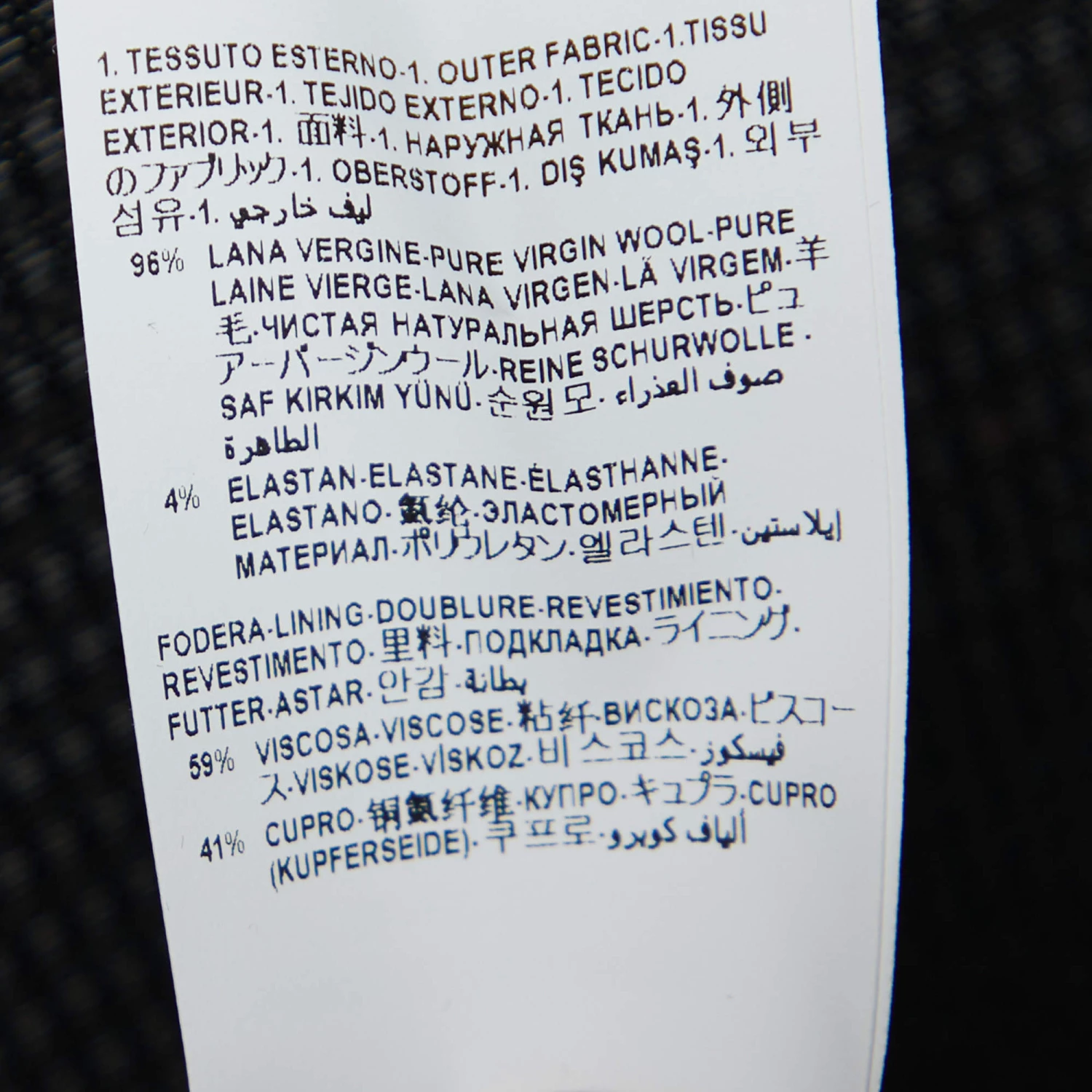 - Composition: Shell: 96% Virgin Wool ; Lining: 59% Viscose, 41% Cupro