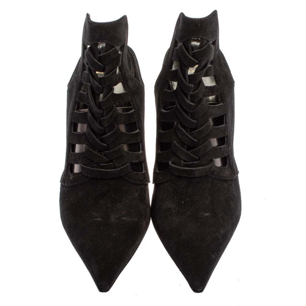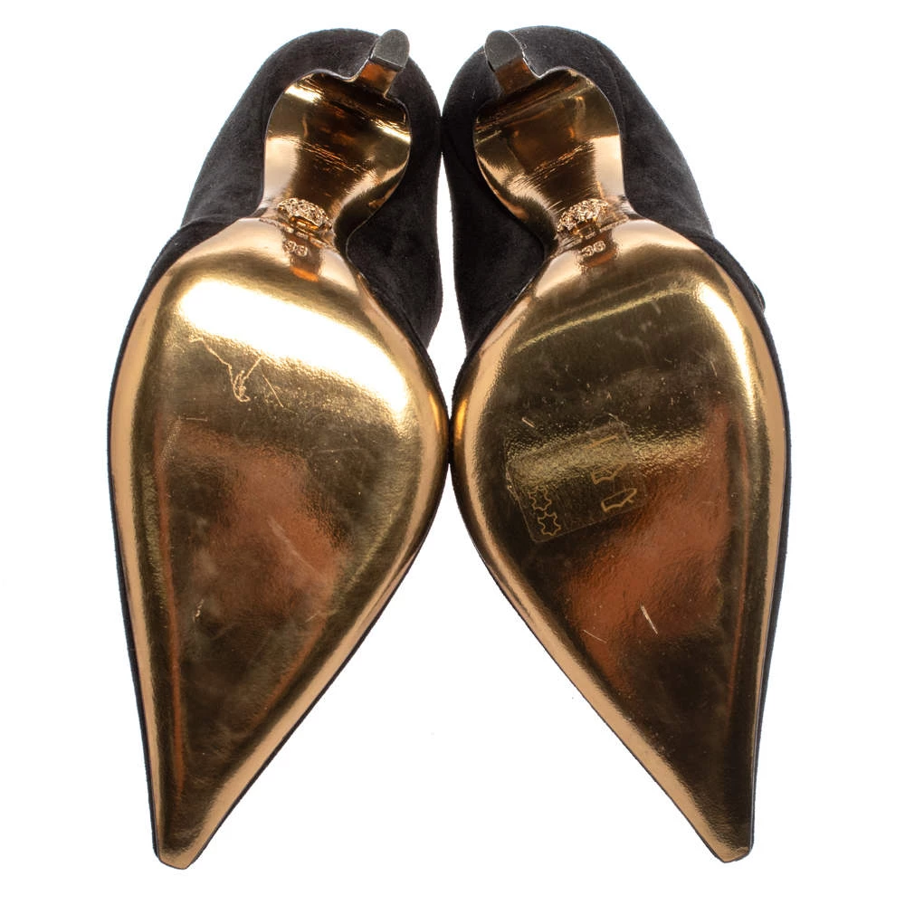 Designed to impart a luxurious appeal, Versace’s mule is for fashionable expeditions. The mule in black suede features a pointed toe, cut-out detailing on the raised vamp, and a slim 11.5 cm heel.