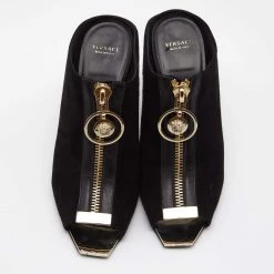 These Versace sandals will infuse luxury and sophistication into your outfit. Detailed with Medusa sliders of the front zipper closure and heels, this pair reminds you of the label’s bold and empowering designs. It is crafted from suede and is beautified with gold-tone accents.