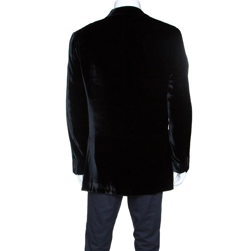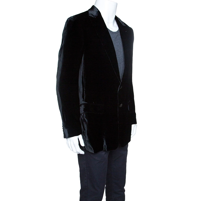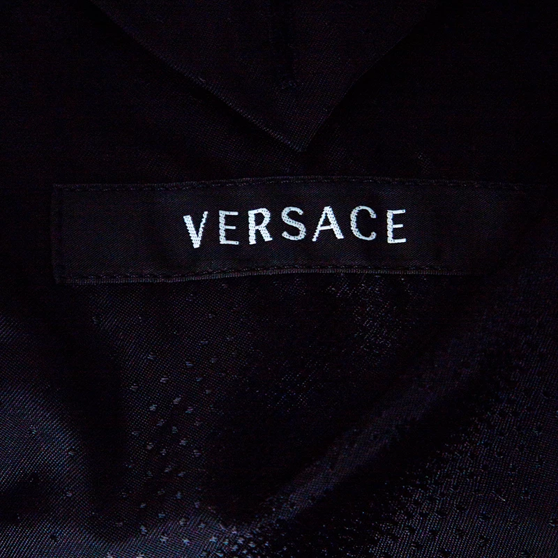 Craft your impeccable formal style in this Versace blazer. Featuring a well-tailored silhouette, this elegant creation flaunts notched lapels with a buttoned closure and long sleeves. The perfect fitting of this blazer promises a striking corporate look.