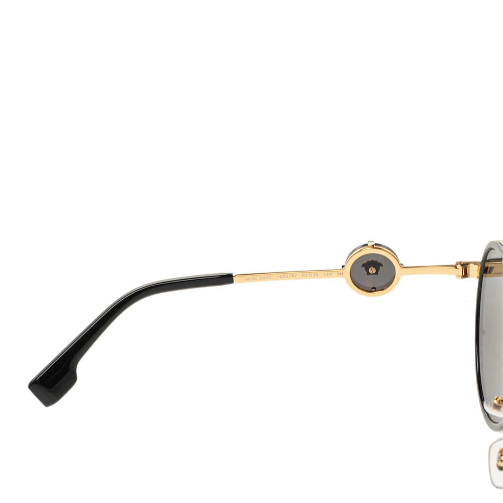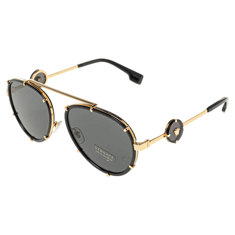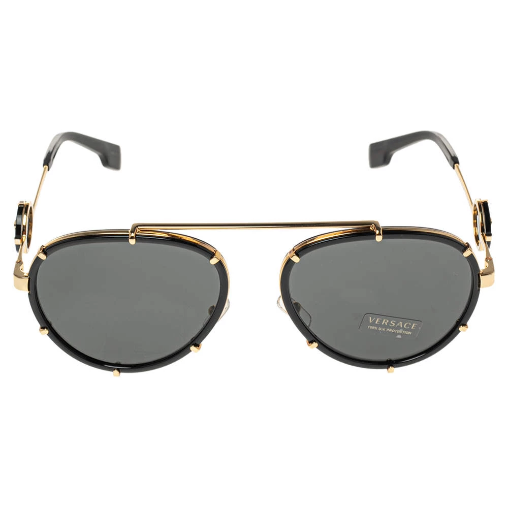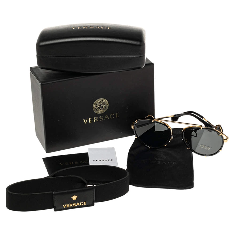 Truly luxe, truly Versace. The Vintage Icon Pilot Clip On Aviator sunglasses by Versace come with a black frame and gold-tone metal fittings. The pair has high-quality lenses for enduring eye protection and the Medusa icon on the temples for an unmissable signature.