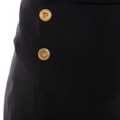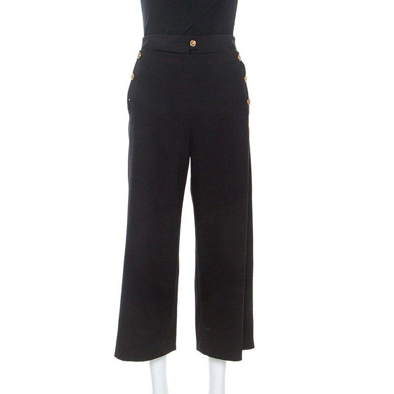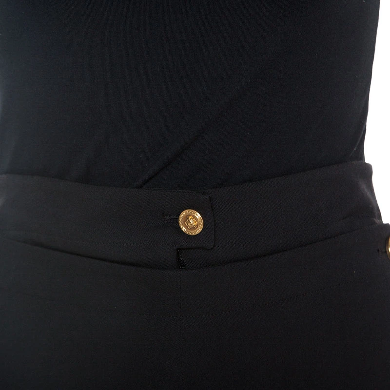 These stunning Versace trousers have been crafted from a black wool blend. They are fitted with gold-tone Medusa buttons that add a touch of glamour. Wear them with heels and a shirt to deliver a chic look for formal occasions.