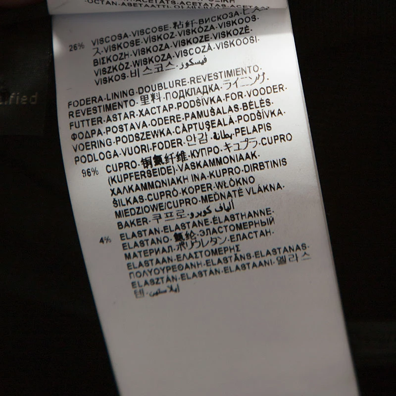 - Fabric: Shell: 98% Wool, 2% Elastane; Trim: 74% Acetate, 26% Viscose; Lining: 96% Cupro, 4% Elastane
