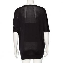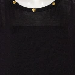 This stylish top by Versace is effortless and can be dressed up instantly. It has a black woolen exterior, an oversized shape, and gold-tone Medusa motifs on the neckline.