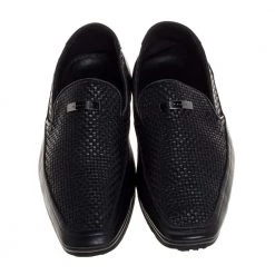 Exquisite and well-crafted, these Versace loafers are worth owning. They have been crafted from woven leather and they come flaunting a black shade with logo plaque on the uppers. The loafers are ideal to wear all day.