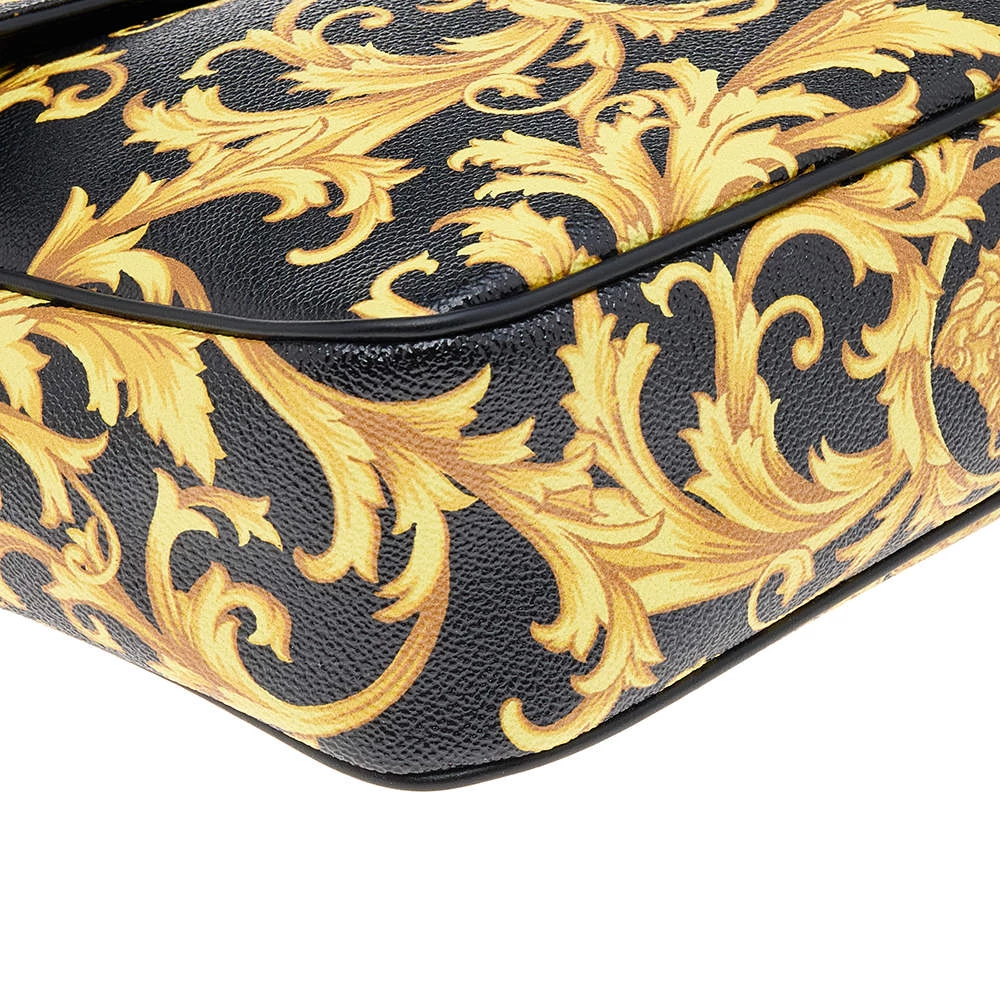 Make a statement with this bag from Versace. The bag is crafted from leather and the compact silhouette is covered in Barocco prints. It flaunts a long shoulder strap and the famous Medusa logo on the flap.