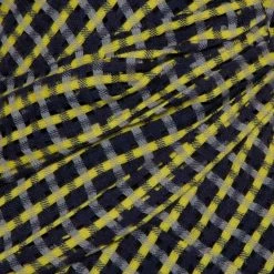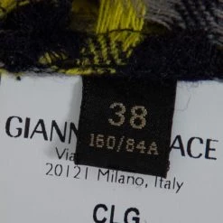 Make a dazzling style statement with this chic dress from Versace. Designed to beautify, this wool creation is presented in black and yellow. It is fashioned as a one-shoulder and enhanced with draped accents, a front slit, side zipper, and midi hemline.