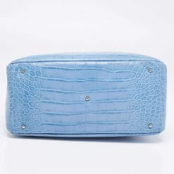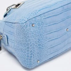 Designed into an architectural shape, this Versace satchel will infuse a touch of luxury into your outfit. It is held by dual handles at the top and it is adorned with branded charms. Created from croc-embossed leather, it flaunts silver-tone hardware, a fabric-lined interior, and a top zipper closure.