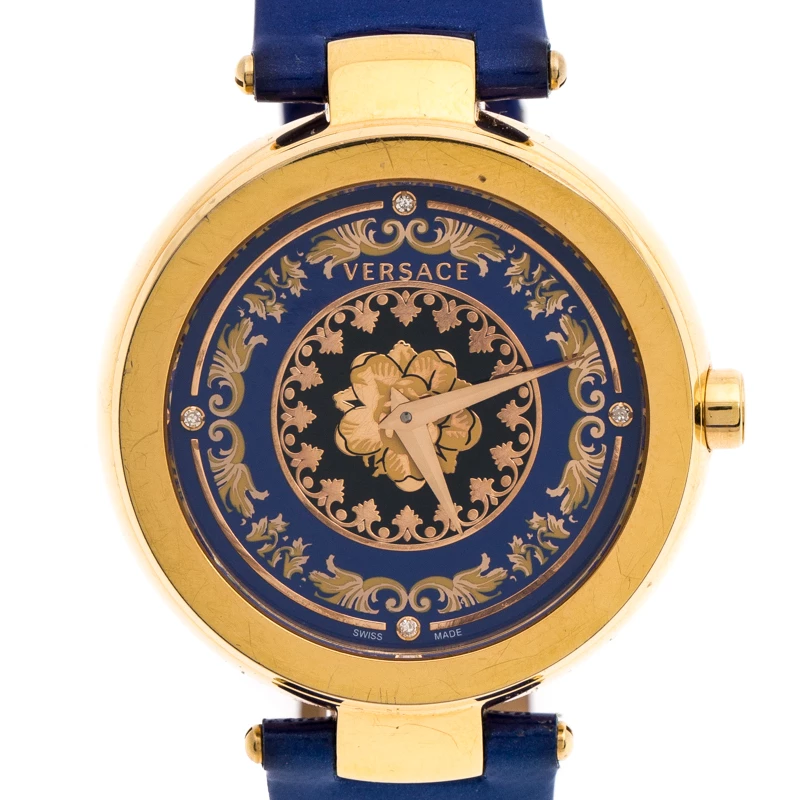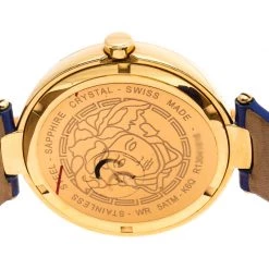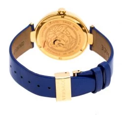 This beautiful timepiece from the house of Versace is sure to be a conversation-starter with its eclectic and eye-catching design. Constructed using gold-plated stainless steel, this Mystique Foulard VK6020013 watch features a beautiful blue dial lit with lovely patterns. The case is elegantly held by leather straps and fastened with a simple clasp.