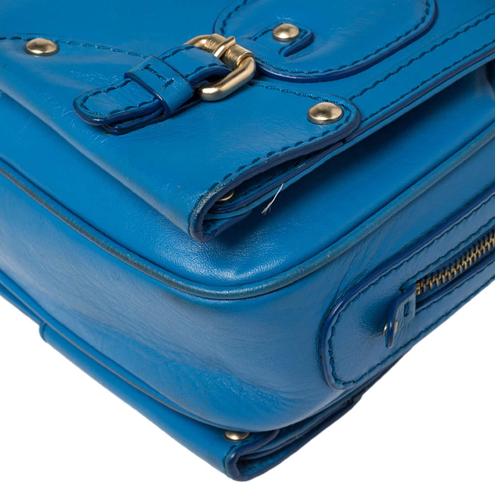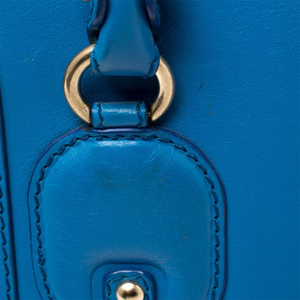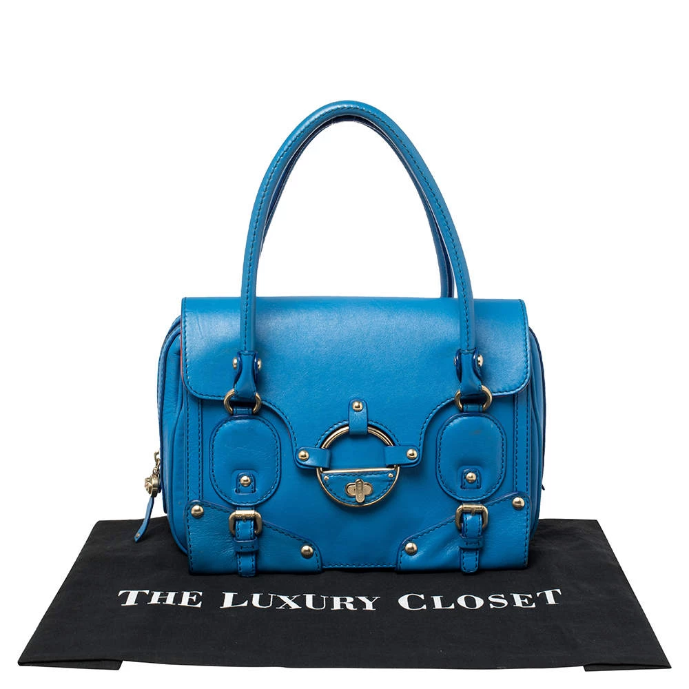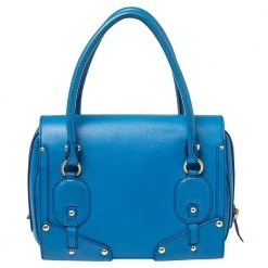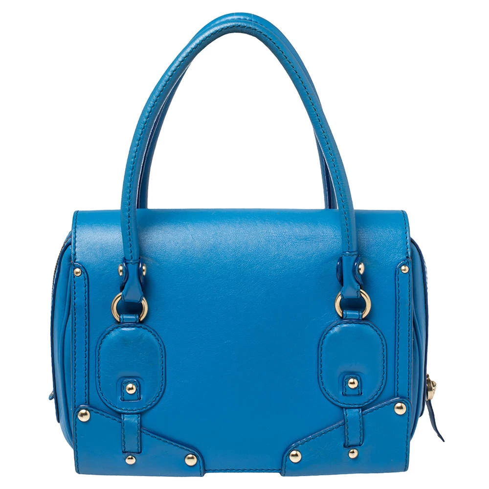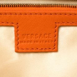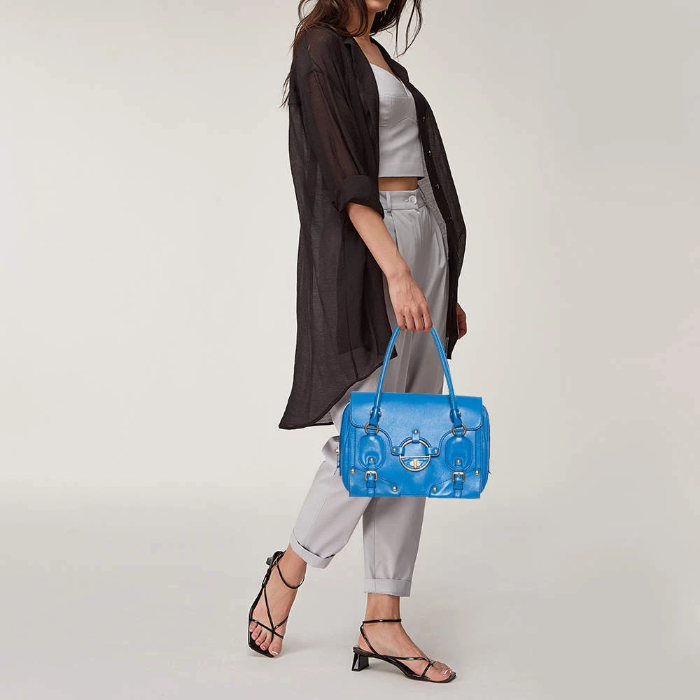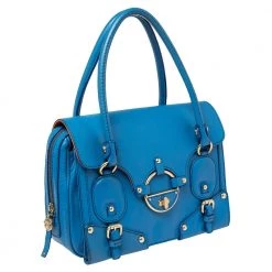 This bold and eye-catching Versace satchel is sure to make heads turn. Crafted from leather, the bag is accented with gold-tone studs, buckles, and a turnlock on the front flap. It features dual handles and a satin-lined interior that will hold all your necessities.