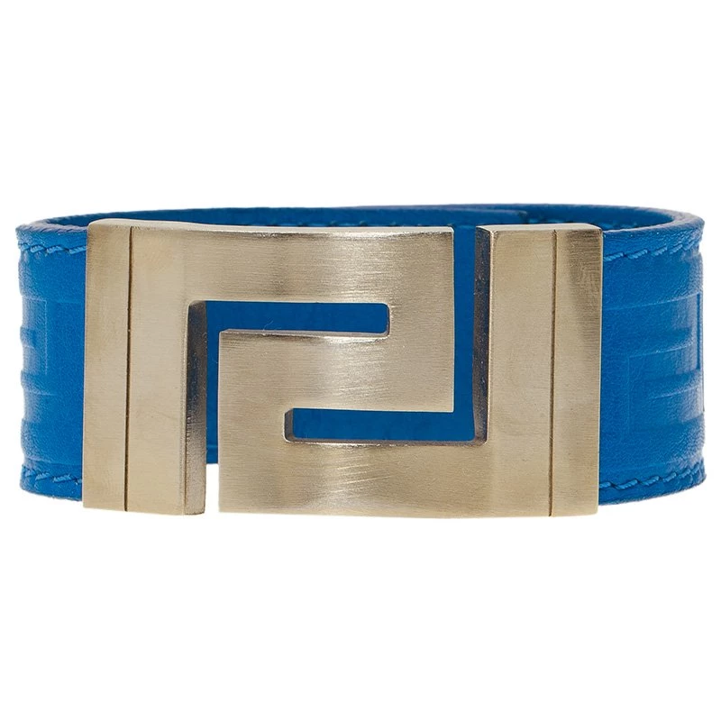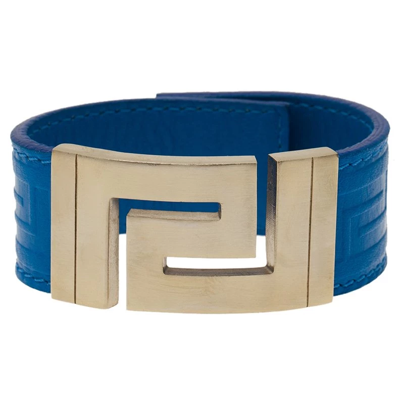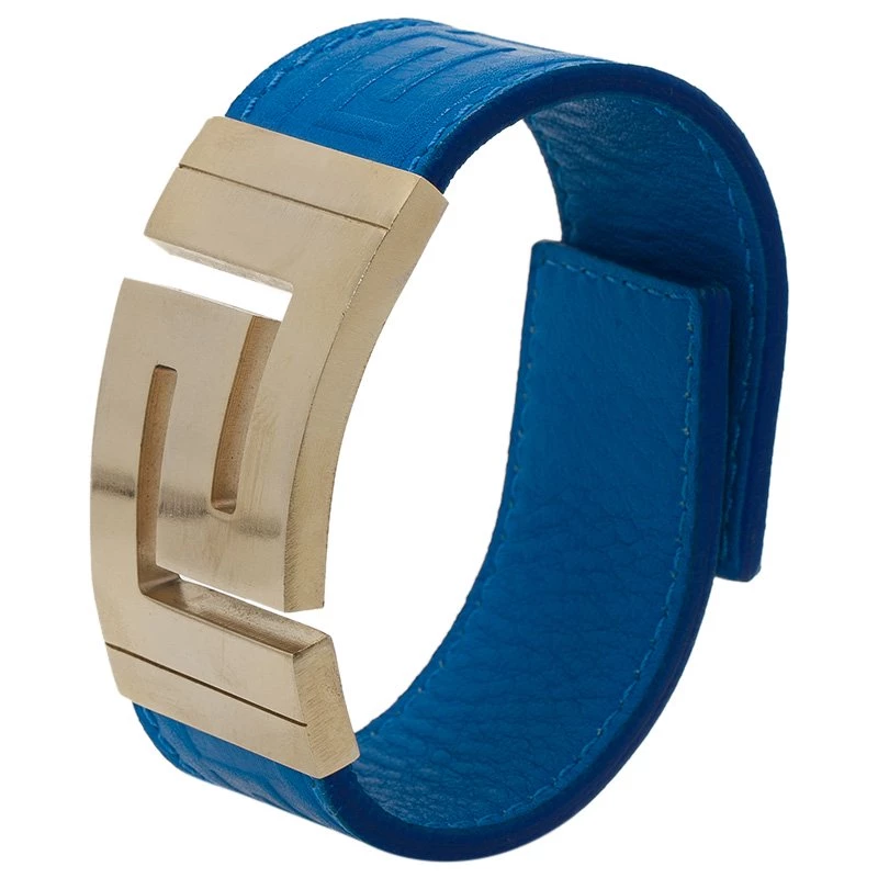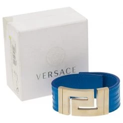 This ultra cool bracelet by Versace is funky and stylish! Made from blue leather, it has a flashy gold-tone buckle that goes well with the leather.