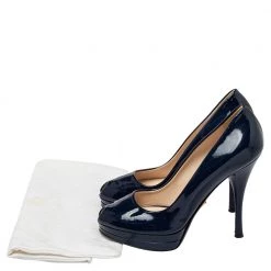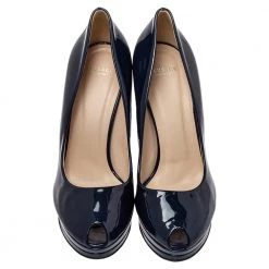 You can never go wrong with these pumps from Versace. Crafted from quality patent leather, they come in a lovely shade of blue. They are styled with peep toes, platforms, 12 cm high heels, and a sculpted top line. They are great for special occasions and are finished with leather soles.