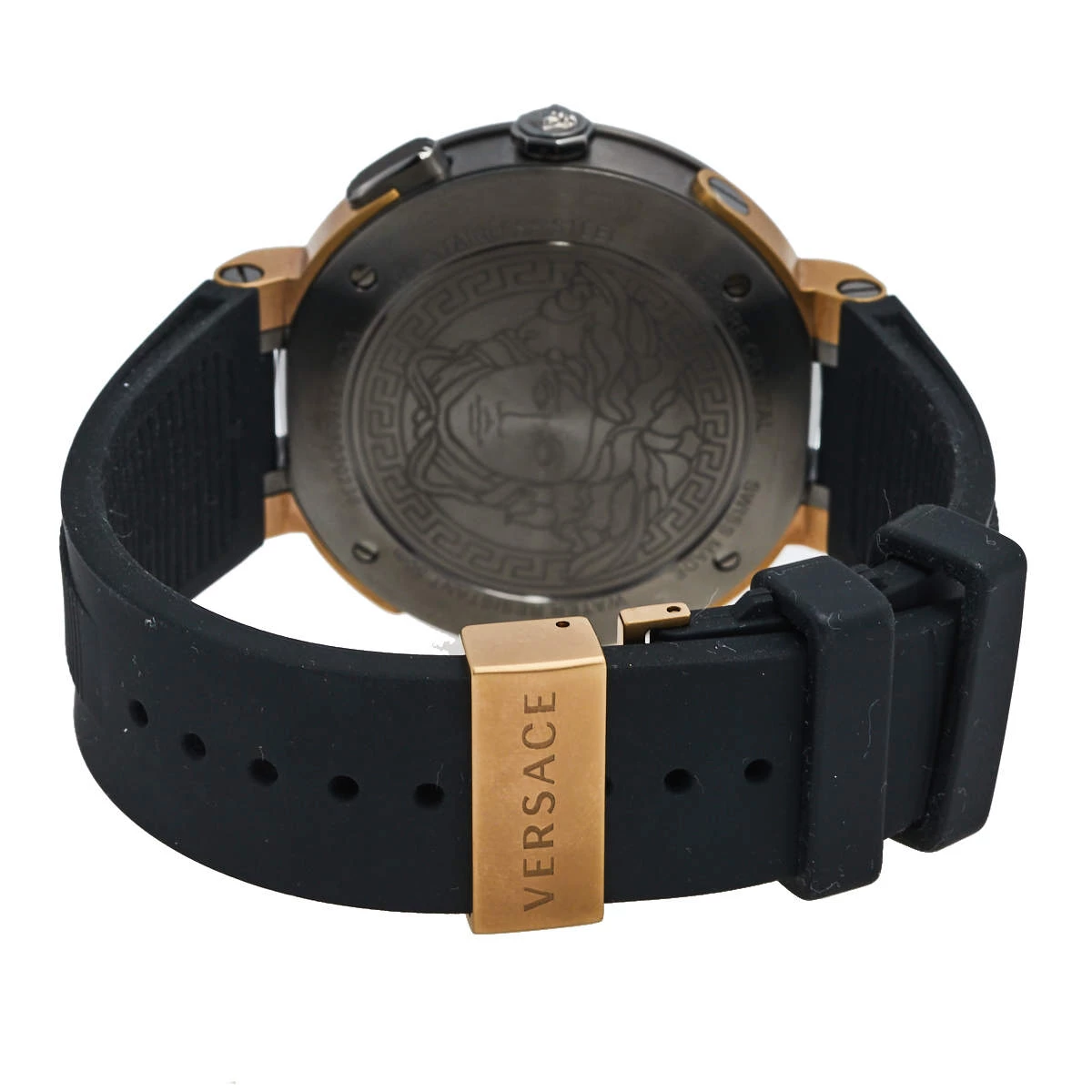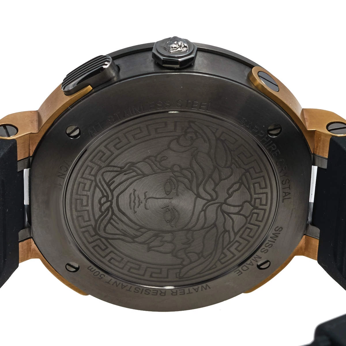 Versace’s V-Extreme GMT VCN030017 is a must-have piece in your coveted watch collection. It is designed to effortlessly deliver a luxurious appeal. The watch has a PVD-plated stainless steel case and a bronze dial that is easily readable. A comfortable rubber bracelet fixes the timepiece to your wrist.