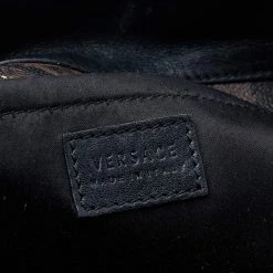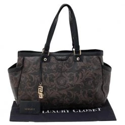 This tote is a classic Versace creation. It is crafted using brown-black Barocco-printed canvas and leather, with a gold-toned logo charm enhancing the front. It has two handles and a satin-lined interior. This tote from Versace will surely bring elegance to your attire.