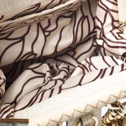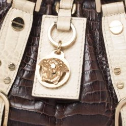 The Madonna Boston bag from Versace is made from croc-embossed leather. It comes with thick chained handles and a logo charm on the front. It is lined with fabric on the inside and will easily hold your necessities.