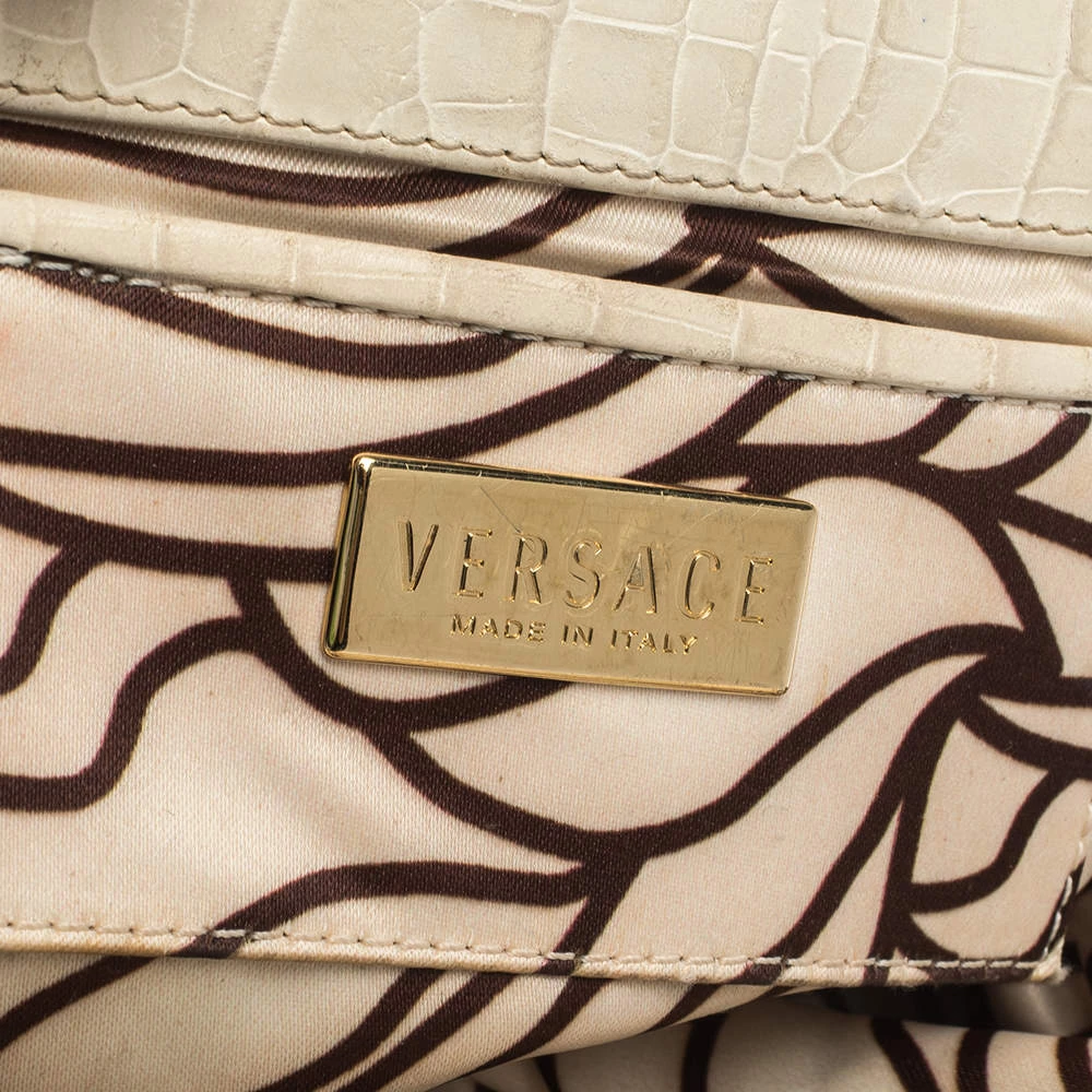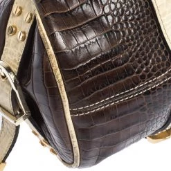 Sophisticated and luxe, this bag from Versace definitely needs to be on your wishlist. The bag is crafted from croc-embossed leather in lovely brown & cream shades and it features a flattering silhouette. It flaunts dual handles and the famous Medusa logo on the front. The spacious satin interior that can house all essentials.