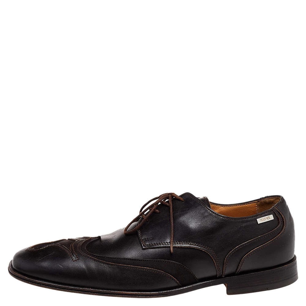 You’ll find this pair of Versace derby shoes an essential addition to your shoe collection. Crafted immaculately, the shoes are constructed to give you a polished look. The shoes are detailed with neat stitches, simple laces, and low heels.