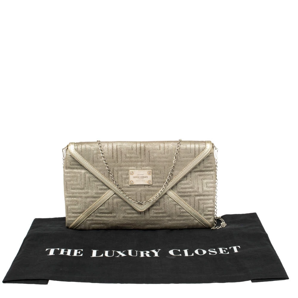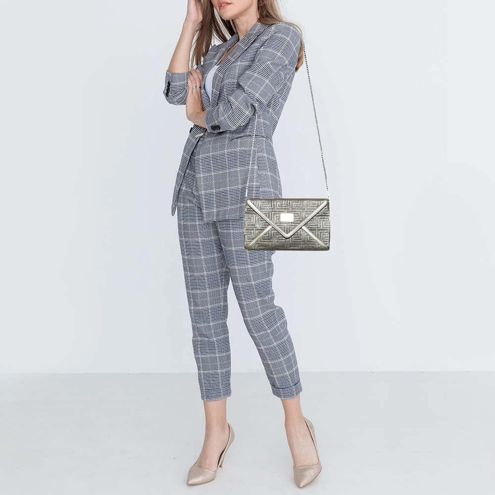 A creation that transforms from a clutch to a shoulder bag as per your liking. The Gianni Couture clutch is made from fabric and detailed with the brand plaque on the font. The clutch is accompanied by a chain that you can tuck inside.
