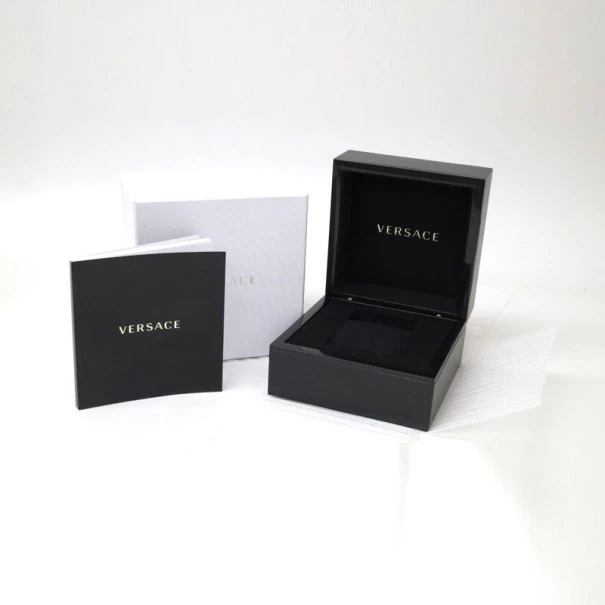When it comes to choosing a timepiece with sheer class, the search ends with this Versace Character Wristwatch. Crafted meticulously from quality stainless steel,the 30m water resistant wristwatch is an absolute delight. The dial looks stunning in black, and features a combination of bold markers in silver and subtle bar markers in white. The Swiss made creation has a prominent date window at 3 o’clock. The outer circumference of the dial indicating minutes makes checking the time quick and easy with just a fleeting glance. The engraved leather strap is fully adjustable and fixes on the hand with a hidden folding push button deployment.Gender: MenOriginal Retail Price: USD $1,800Condition: Like New (This watch is in an excellent unused condition and has an accessory instruction slip marked)Case size: 42mmBand material: LeatherMovement: AutomaticCase material: Stainless SteelBezel: Stainless SteelBody Weight: 920gIncludes: Original box, Case (inner box), Guarantee card and Manual book.