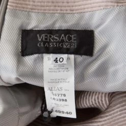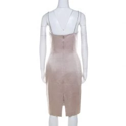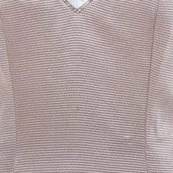 This Versace attire is a posh pick and will lend a classic touch. The metallic colour brings about a glamorous touch to the creation. Made in blended fabric, this attractive number features a ribbed design all over along with rhinestone straps. The dress enhances your charisma and keeps you at your stunning best always.