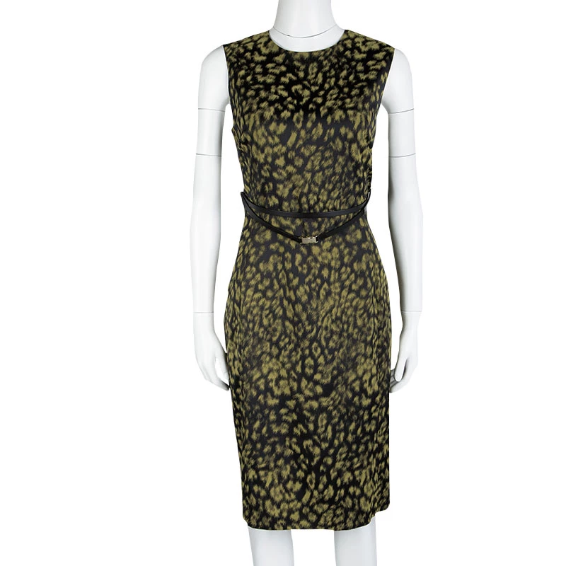 This belted dress from Versace Collection is as delighting as it is gorgeous and stylish at the same time. Made from quality materials, the dress flaunts a round neck, animal prints all over, and a belt at the waist. Designed to perfection, this sleeveless dress will look fabulous with yellow sandals.
