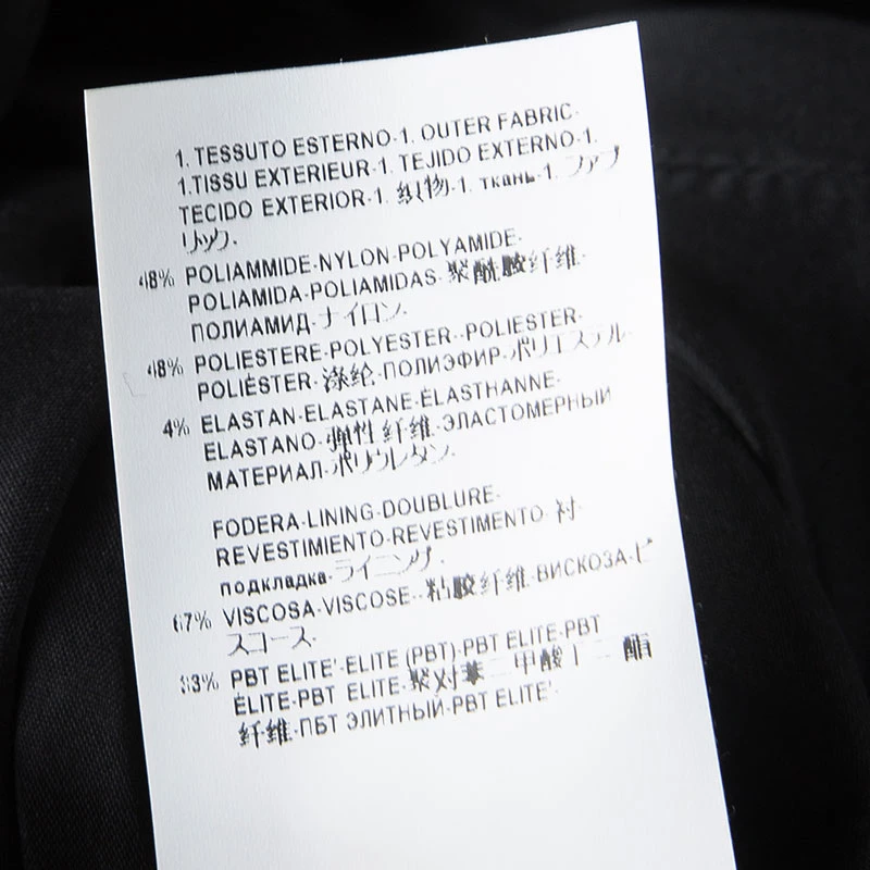 - Fabric: Shell : 48% Nylon , 48% Polyester , 4% Elastane ( Lining : 67% Viscose , 33% PBT Elite )