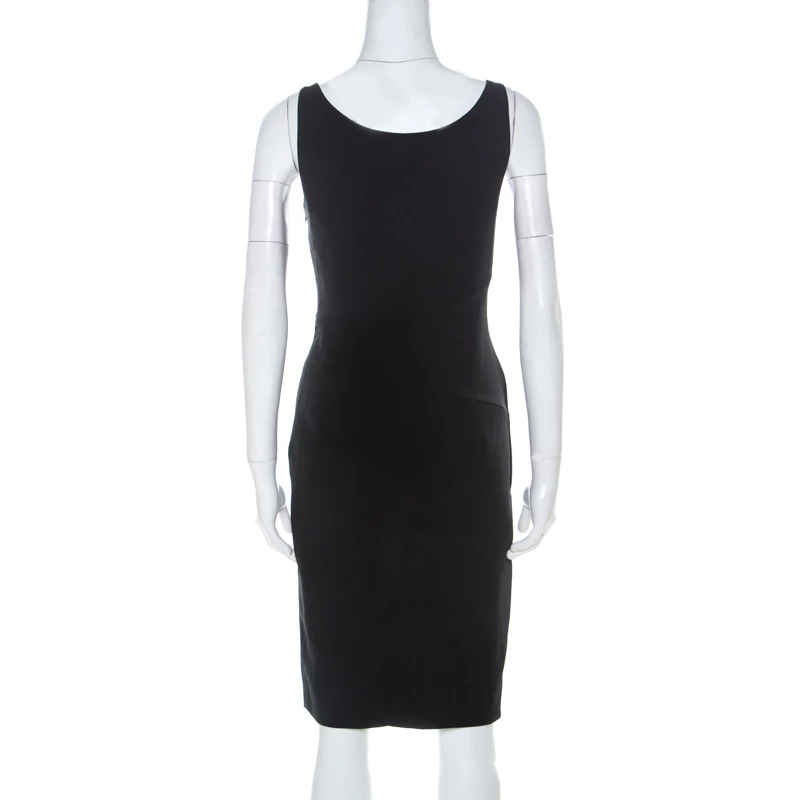 One of the most loved brands in the fashion industry, this Versace Collection dress is a classic piece to own. It is cut from a blend of fabrics and features a draped pattern on the front. Style this black sleeveless dress with the right accessories for an impeccably classy look.