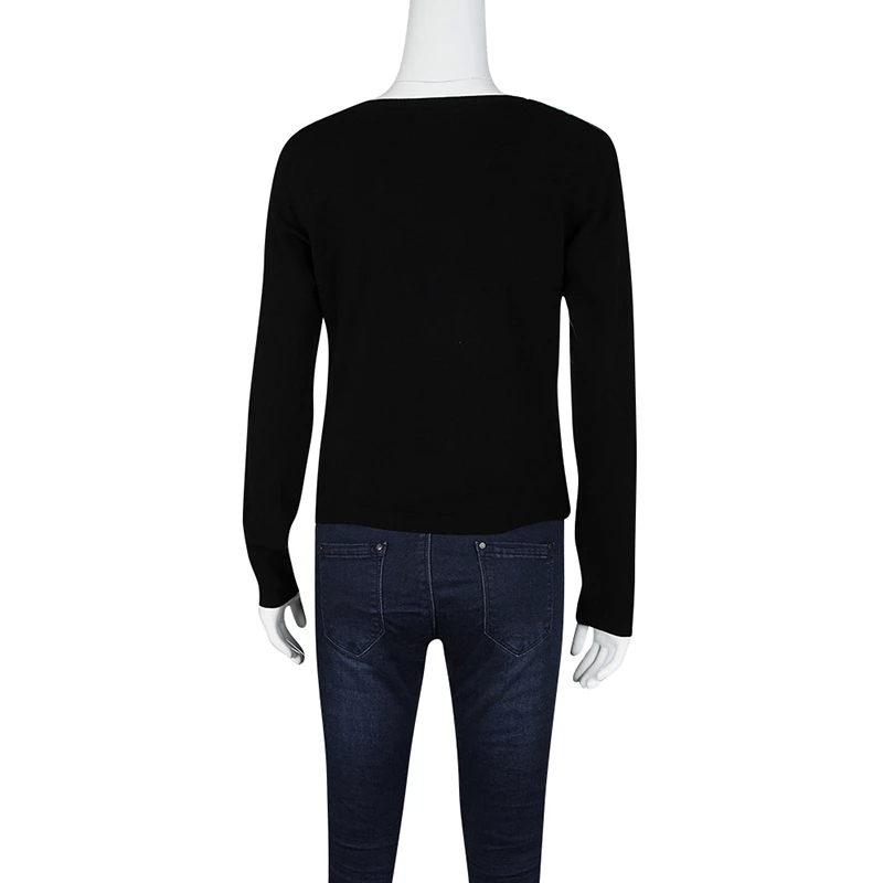 We love this top from Versace Collection as it is high in style and appeal. It comes flaunting long sleeves and prints on the silk panel at the front. You can team it with pants or shorts and high heels.