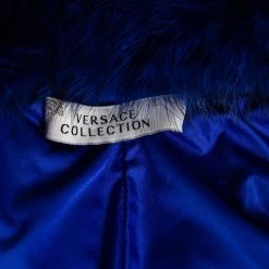 Elevate your jacket collection with this blue one from Versace Collection. It is made of quality materials and it flaunts a quilted down design, zip closure, detachable fur trim collar, and a belt at the waist that gives the piece a lovely silhouette. This creation is just perfect to nail a stylish look.