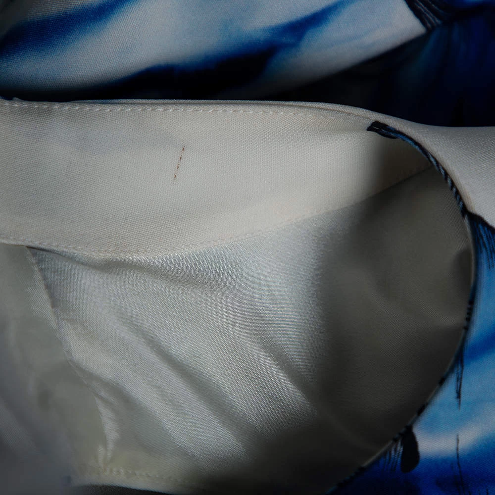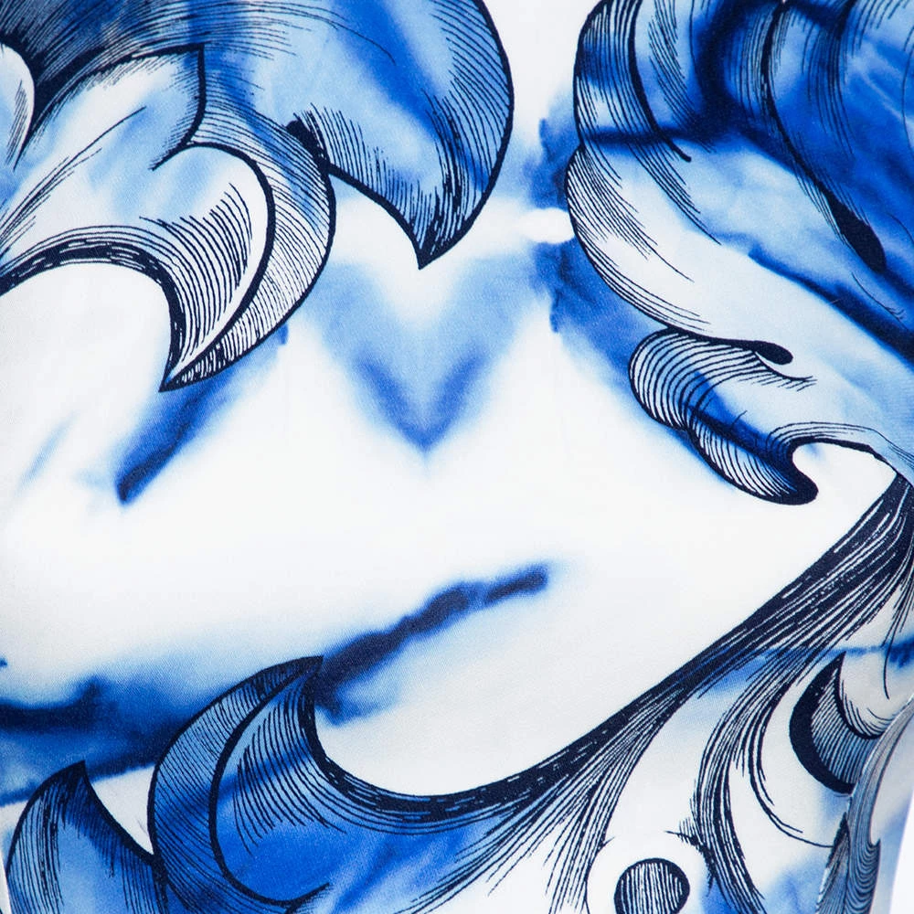 Tailored masterfully, this dress is a Versace Collection creation. It has been designed using blue leaf printed crepe fabric and features a sleeveless style, a fitted shape, and a zip closure. This dress will make you look stunning.