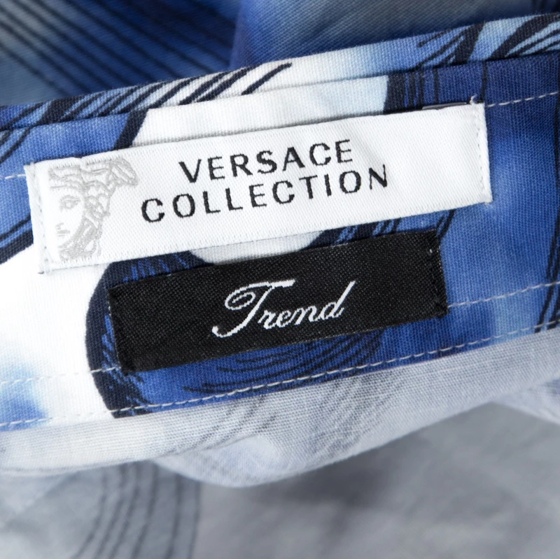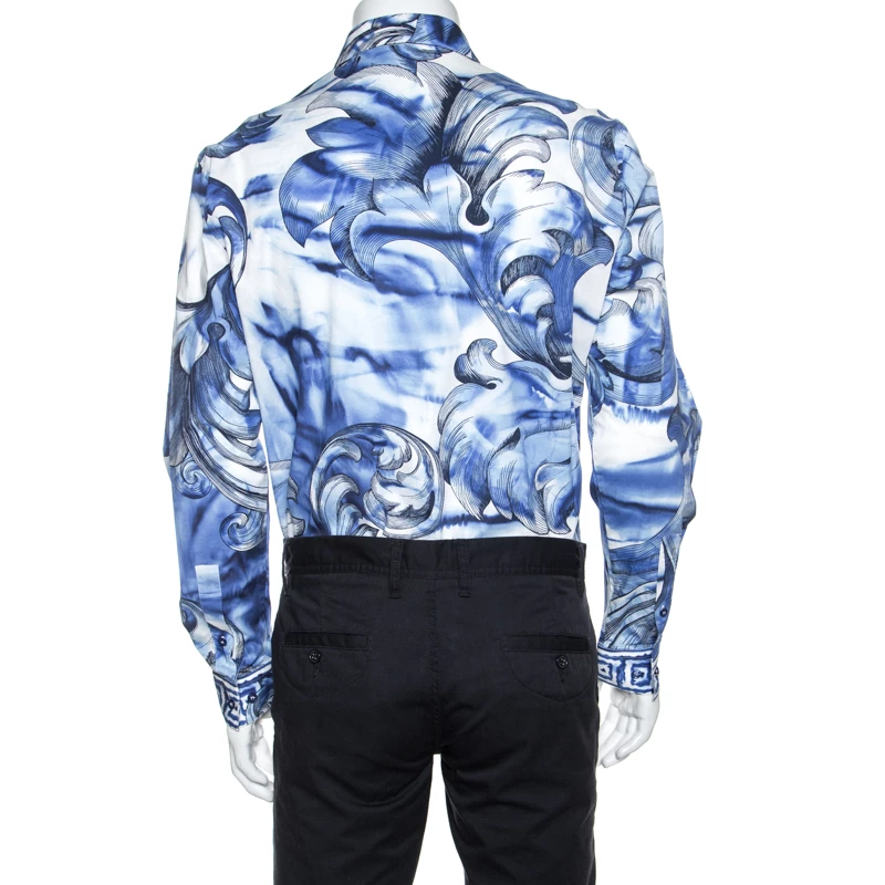 This incredible shirt from Versace will instantly elevate your outfit. Crafted from a cotton blend, this creation comes in blue and flaunts a lovely print throughout. It is styled with long cuffed sleeve, front button, simple collar and has been cut to deliver a good fit. It is great for a day out with friends.