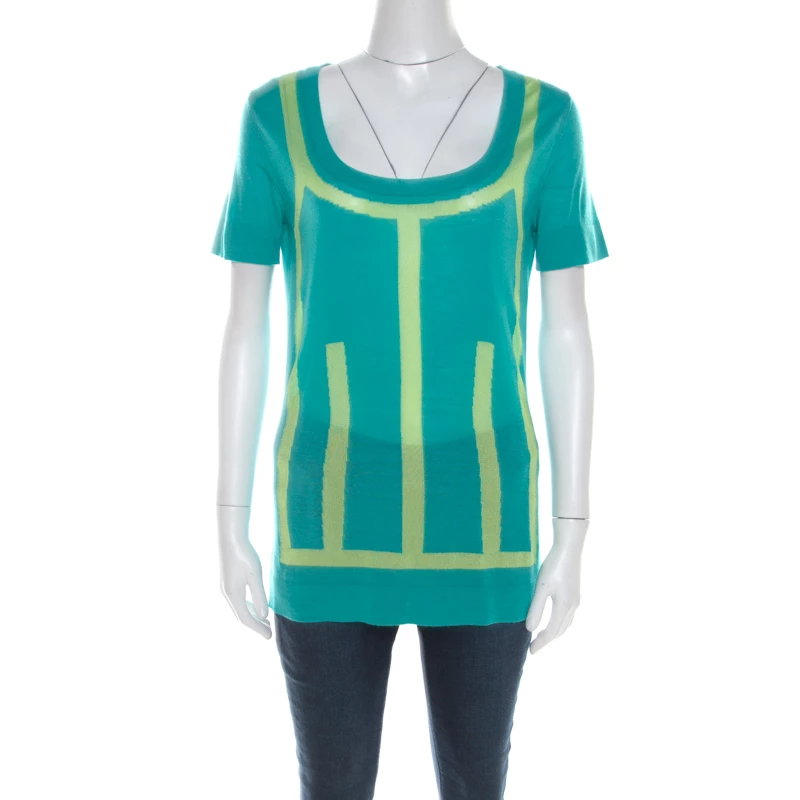 This fabulous set is from Versace Collection and it delights with a top and a matching cardigan. They’ve been knit from the finest fabrics and while the top comes with short sleeves and a broad neckline, the cardigan comes with long sleeves and long length. You can team this set with a pair of a variety of bottoms. This set has a cardigan of large size ( IT 46 / US10 ) and an inner top is of size medium ( IT 44 / US 10 ).